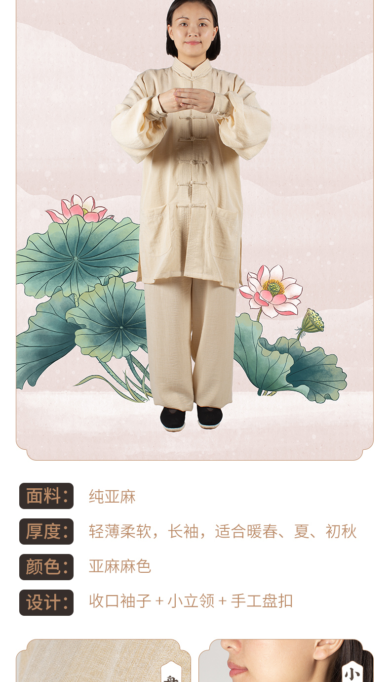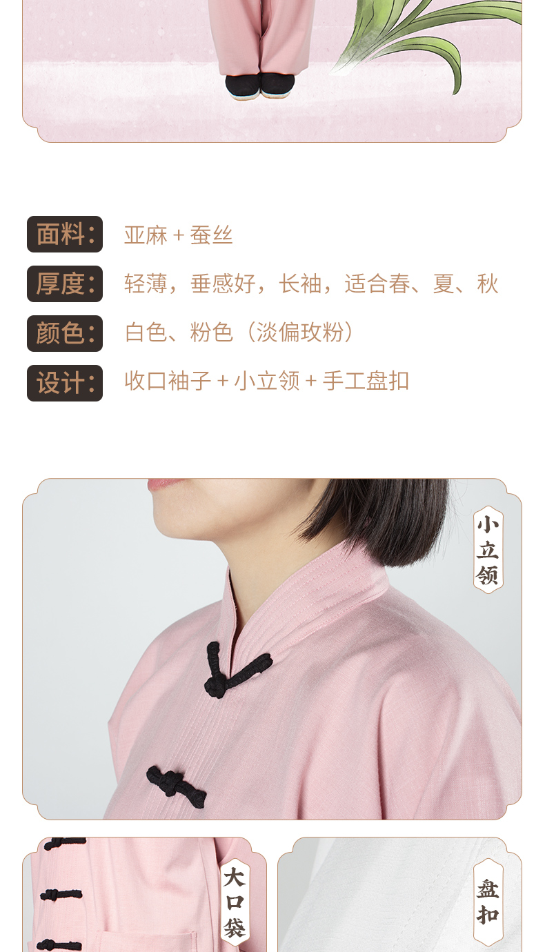 用棉、亚麻 做的练功服 彩色春夏秋(4天后发货 身高和体重不在同一码数范围,咨询客服后再下单)