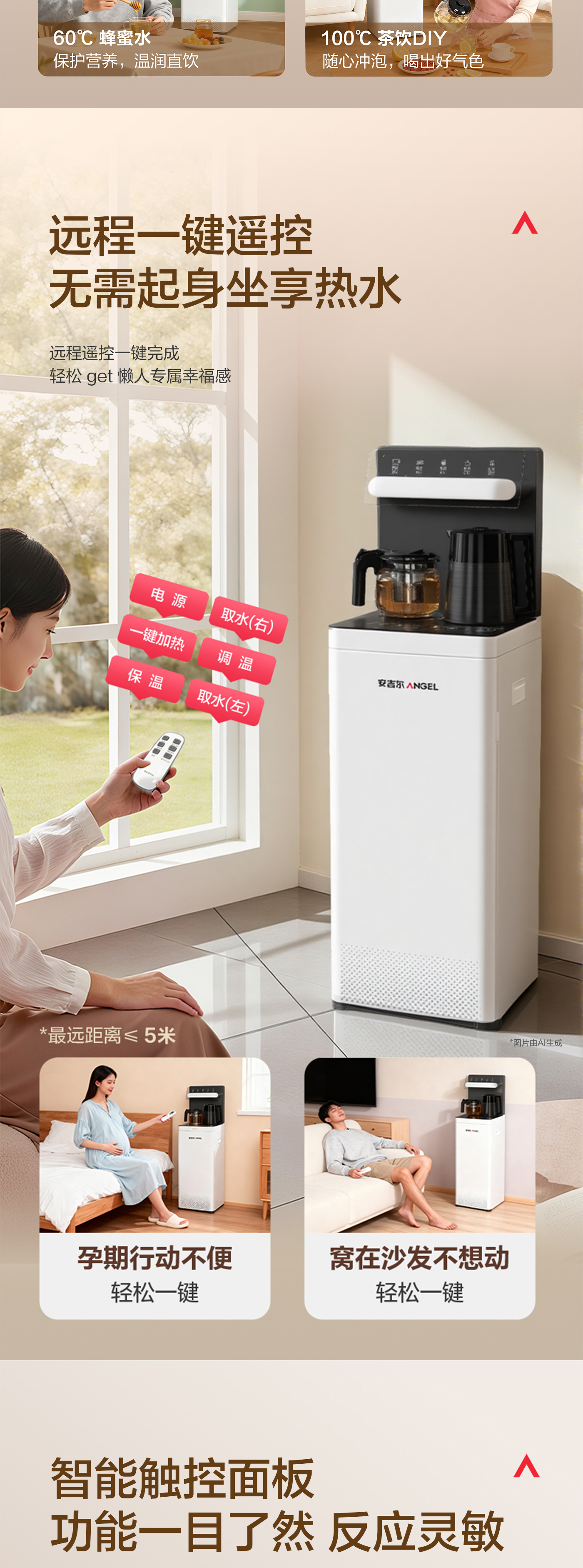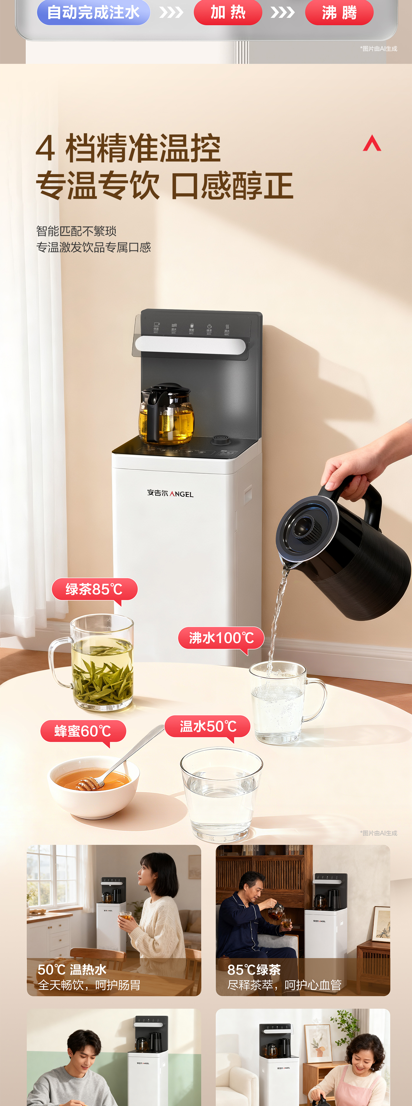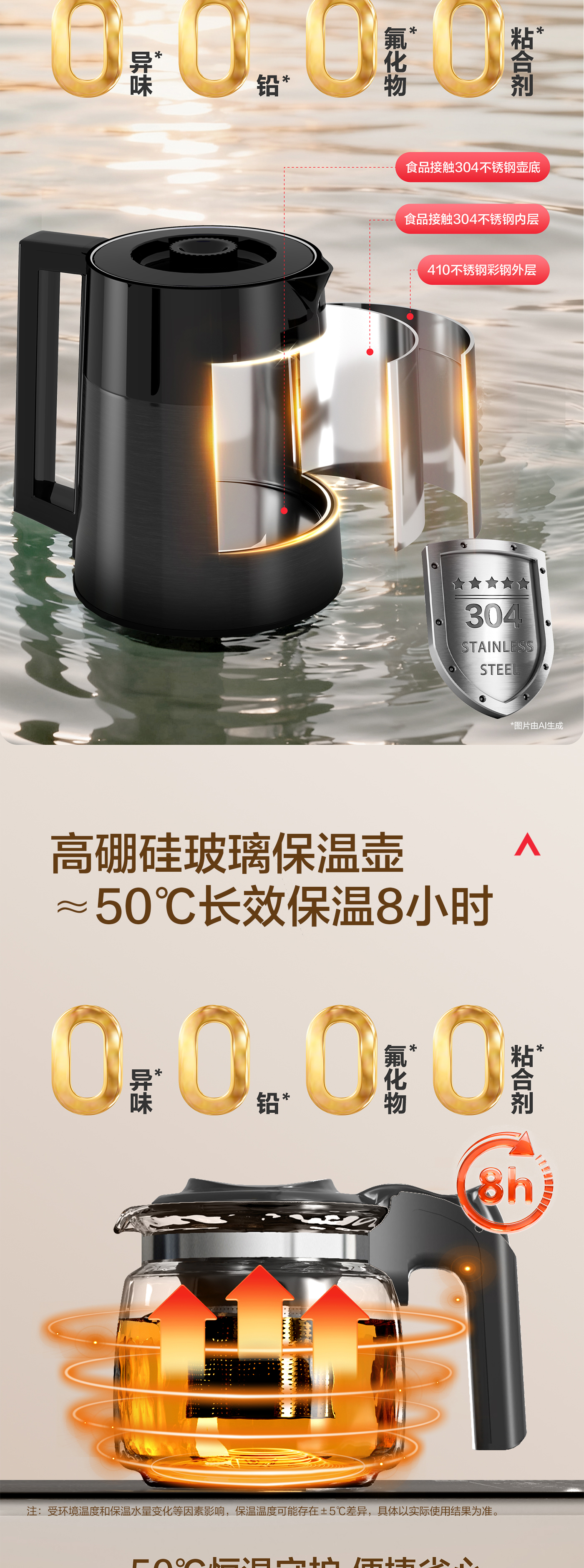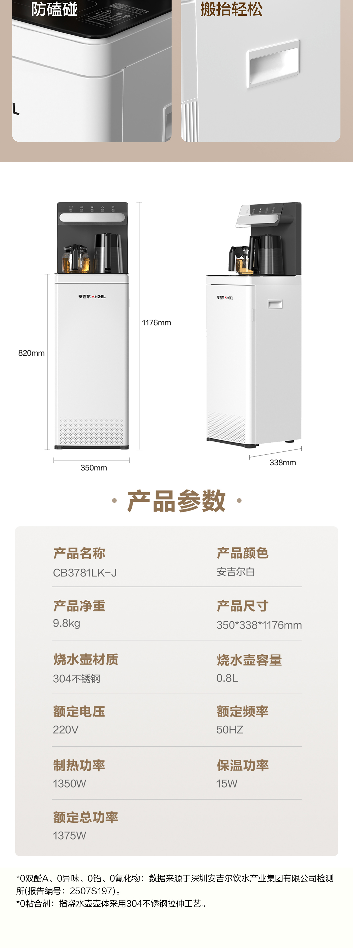 安吉尔3781触控面板防溢防干烧恒温养生茶吧烧水壶一体机
