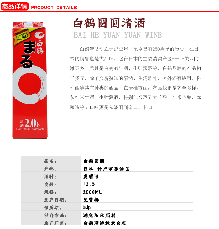 日本白鹤圆圆2L/010328-5 清新柔和回味悠然精选原料