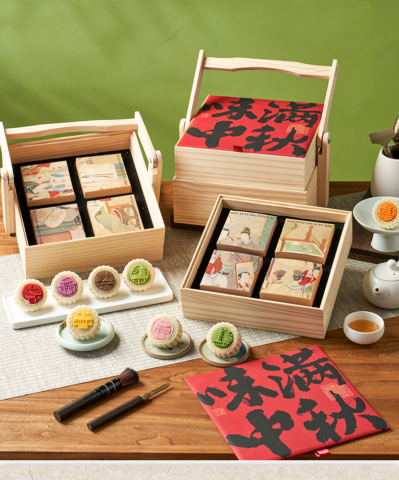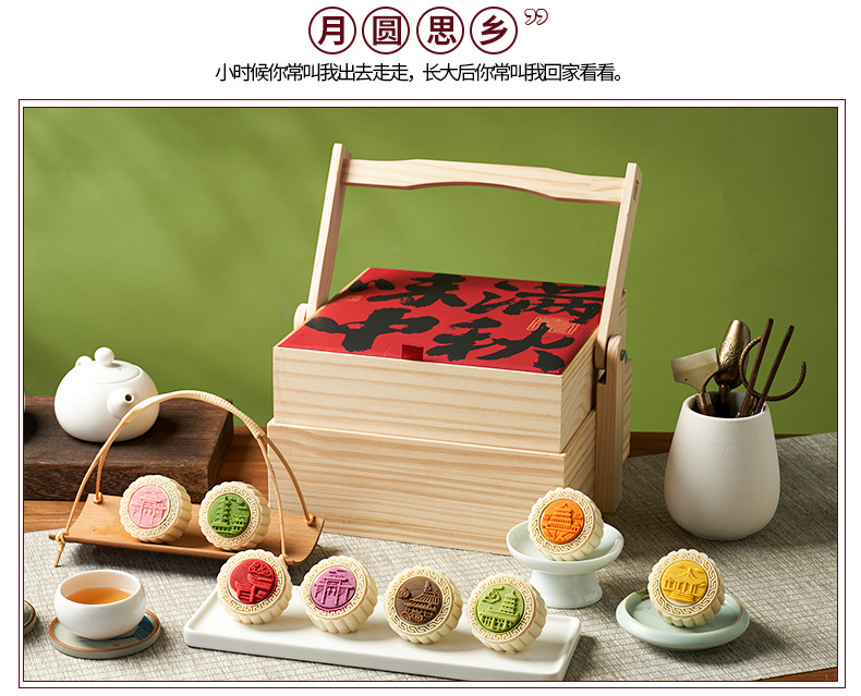 茶味月饼礼盒装高端木盒手提双层中秋节礼品送礼长辈领导月饼批发