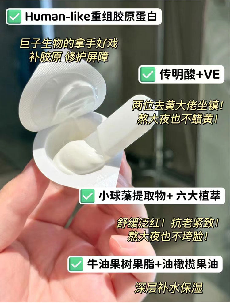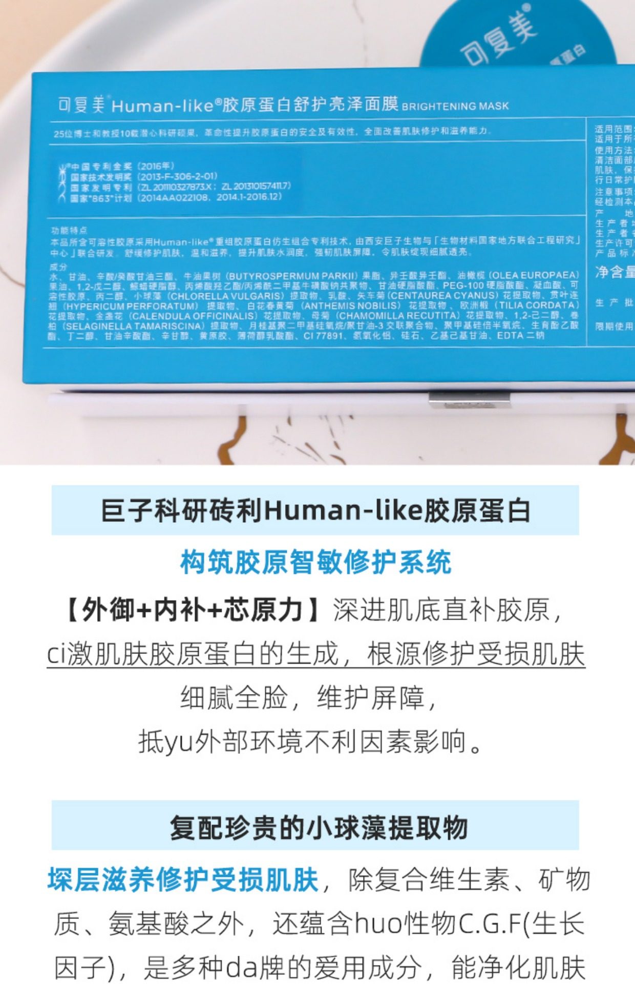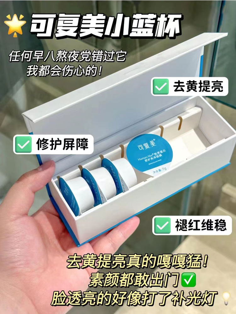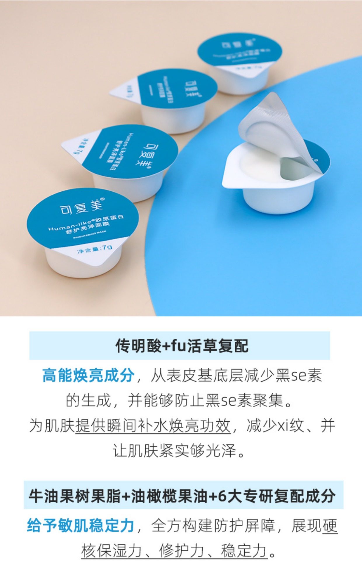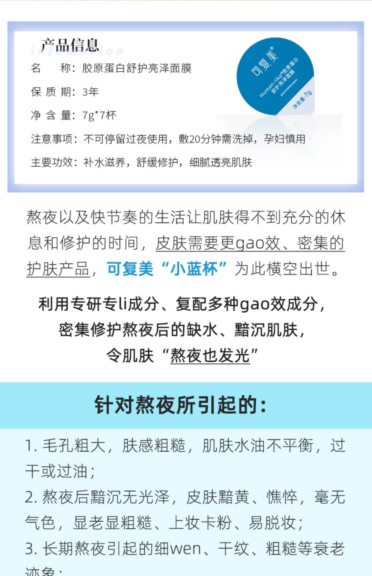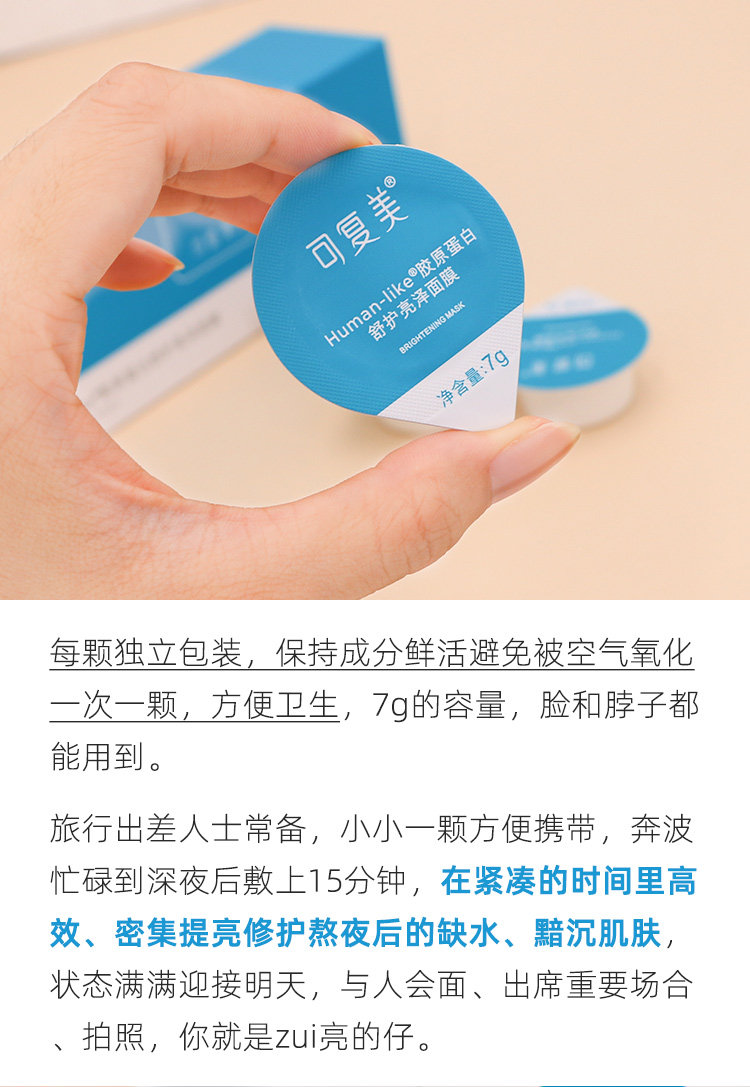 可复美Human-like胶原蛋白舒护亮泽面膜高光小蓝杯涂抹式面膜胶原蛋白熬夜急救焕亮嫩7颗/盒