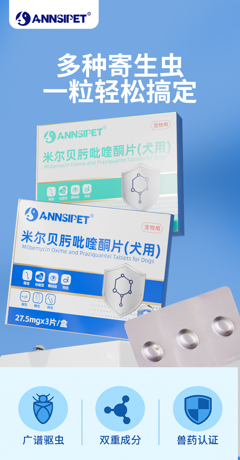 宠安仕米尔贝肟吡喹酮片3粒/盒 狗狗专用广谱体内驱虫药驱绦虫【全渠道销售】