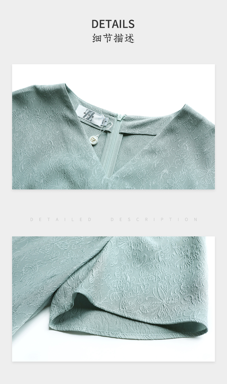 佐尔美连衣裙女夏2021新款桑蚕丝绣花圆领中袖E92LS20