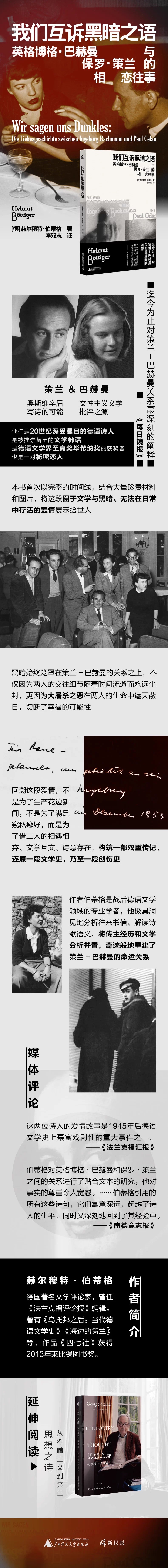 近策兰和巴赫曼,再诉他们的“黑暗之语”,不仅揭开了二人关系的复杂性,也展示了战后文学界的面貌。