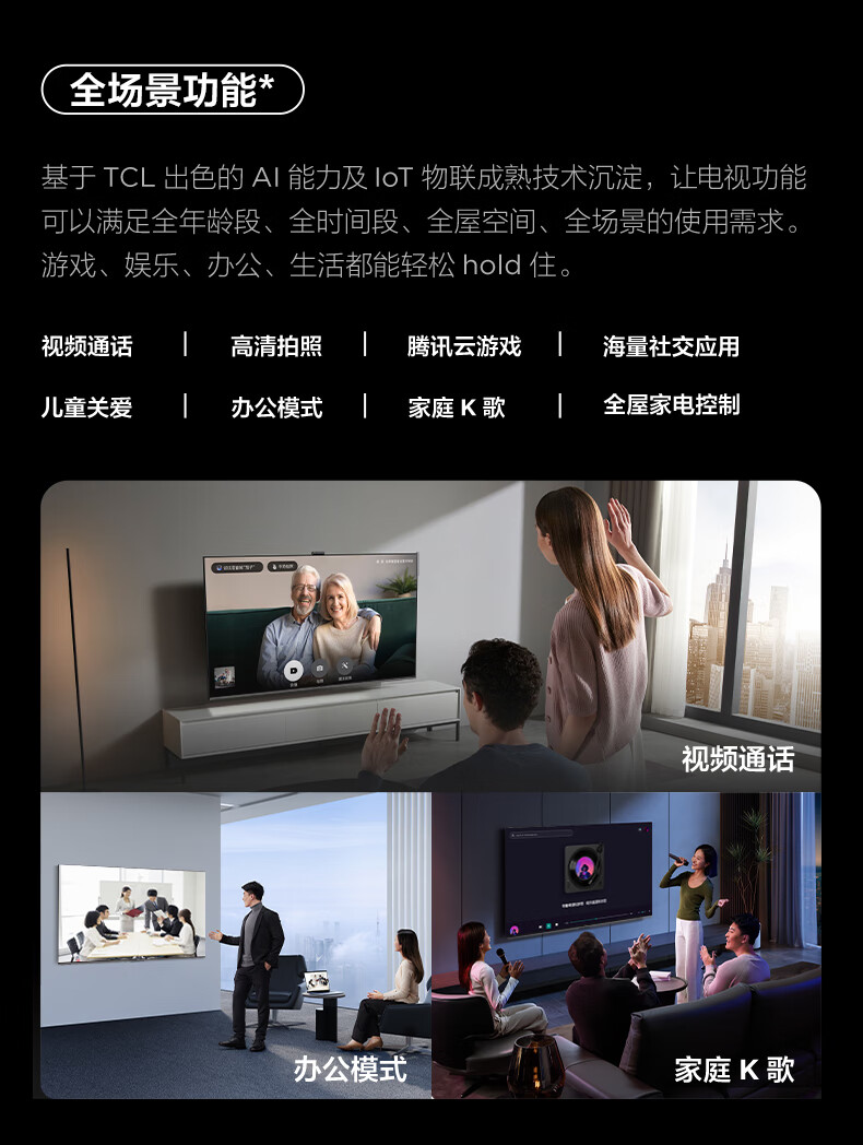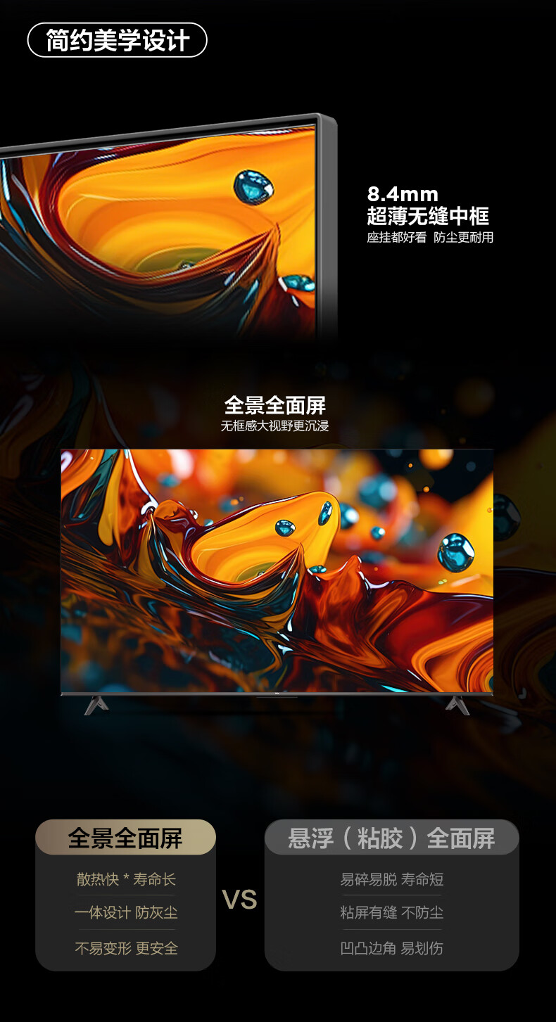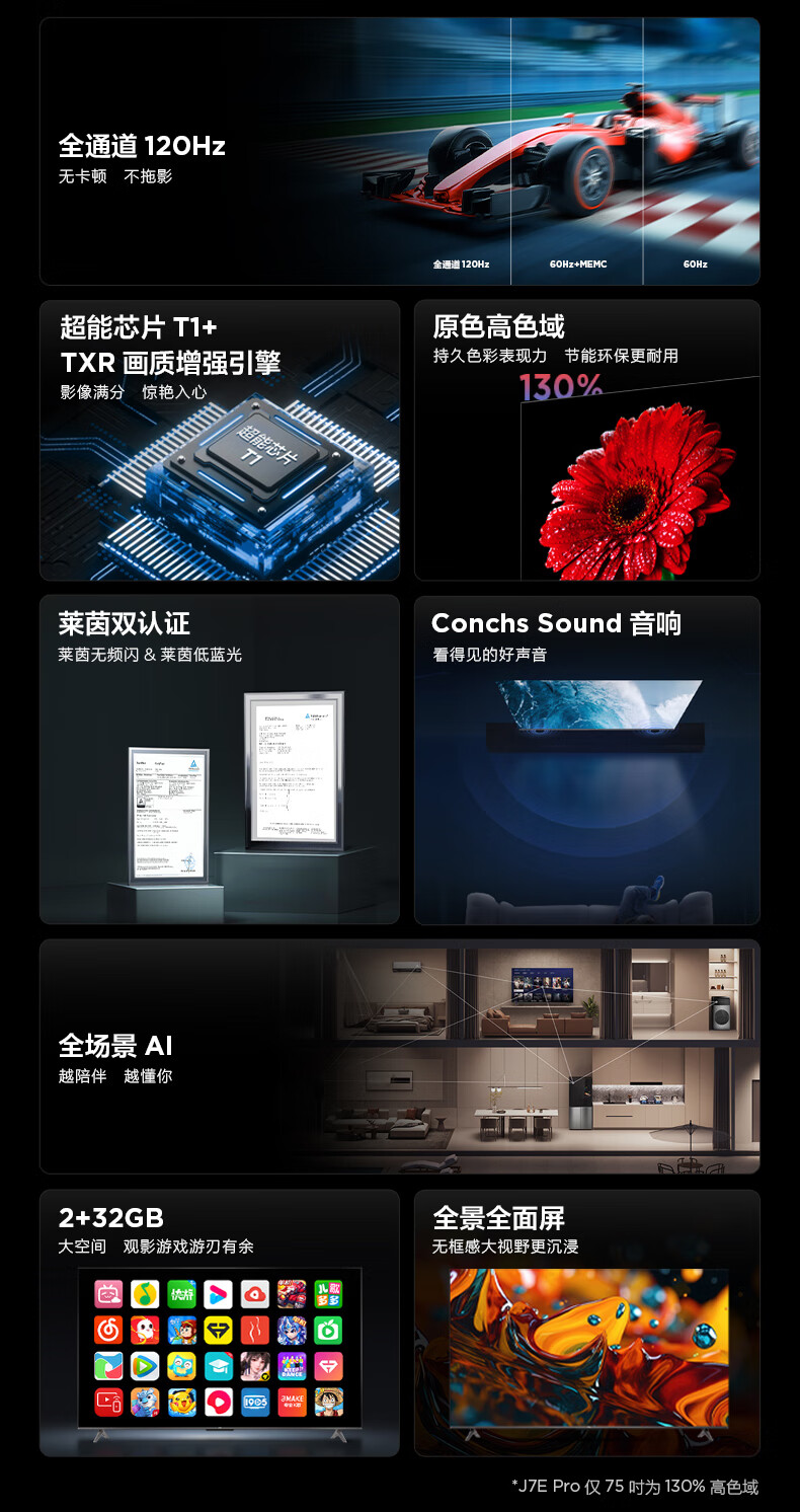 TCL电视 65J7E Pro 65英寸 全通道120Hz 超能芯片T1 莱茵认证护眼 2+32GB 高刷极速电视