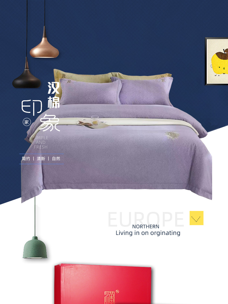 【助农】银鹏汉棉全棉抗菌磨毛四件套高档礼盒装多色可选(被套:2.0*2.3m,床单2.5*2.5m,枕套2个:0.48*0.74m,误差±5%)
