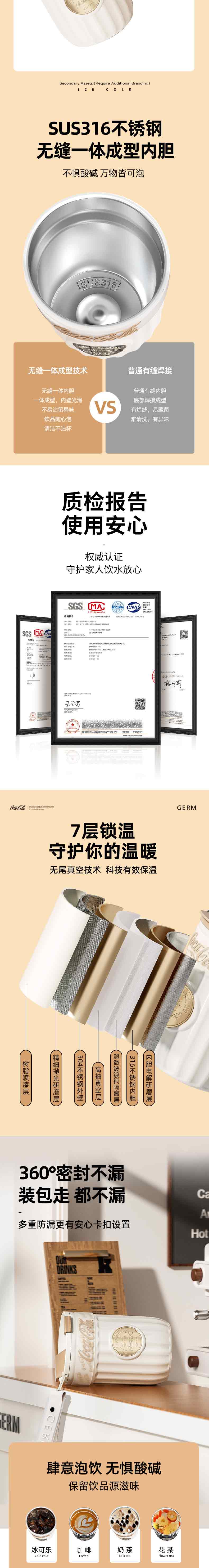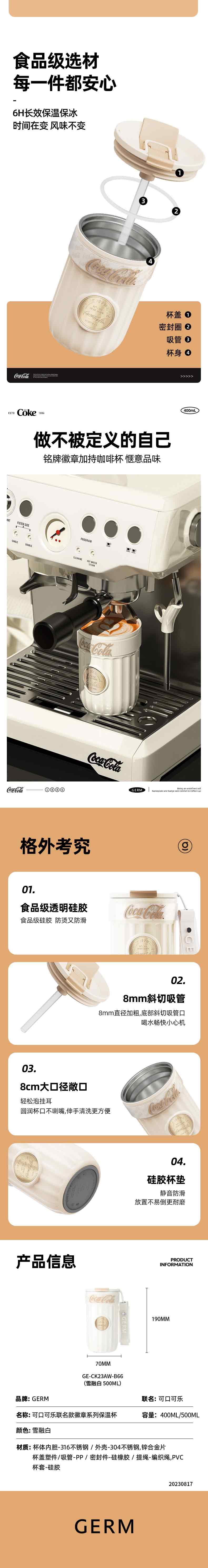 GE-CK23AW-B66 可口可乐联名款徽章系列保温杯(雪融白)