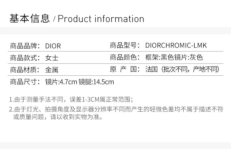 Dior 迪奥 女士黑色框架太阳镜