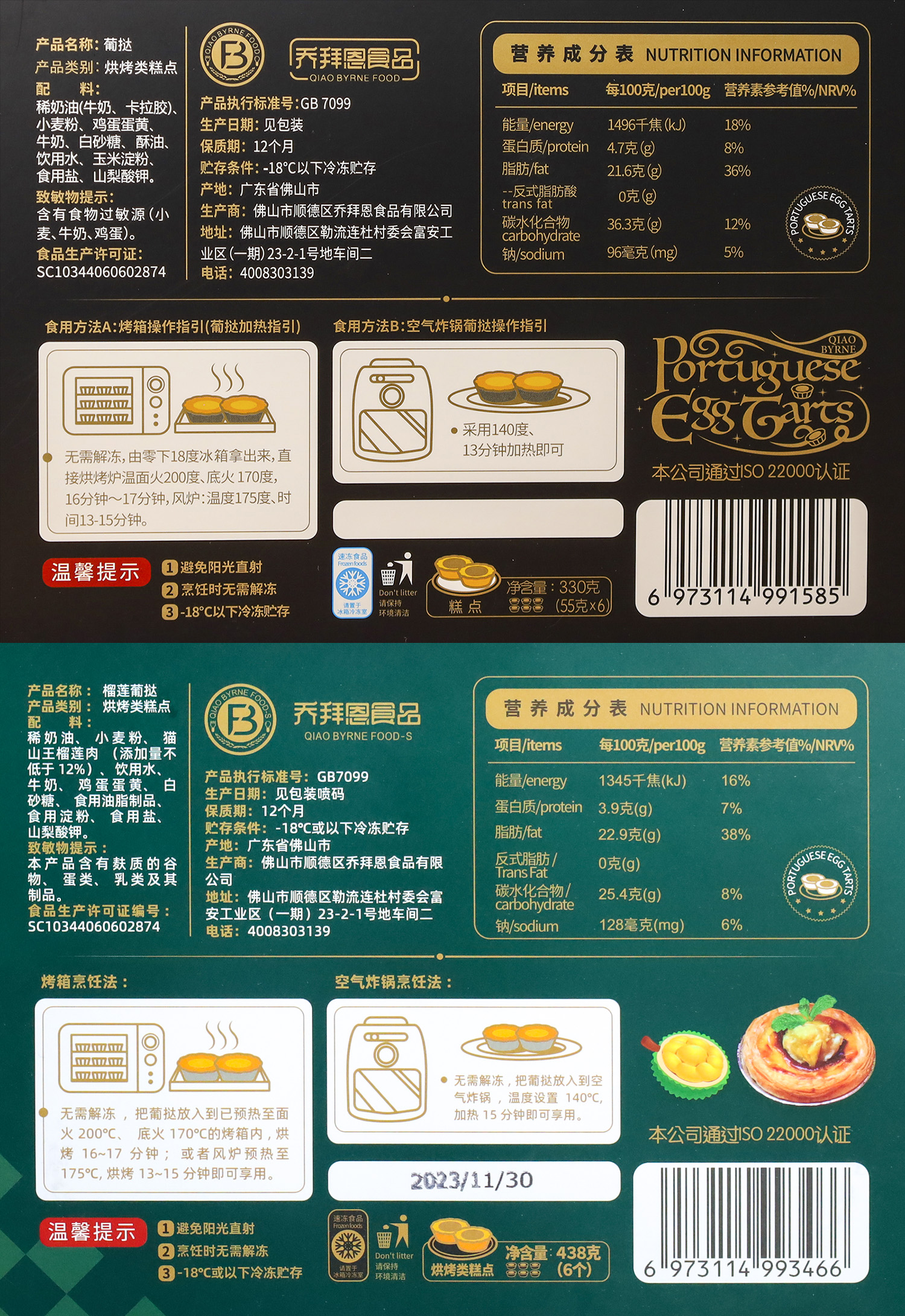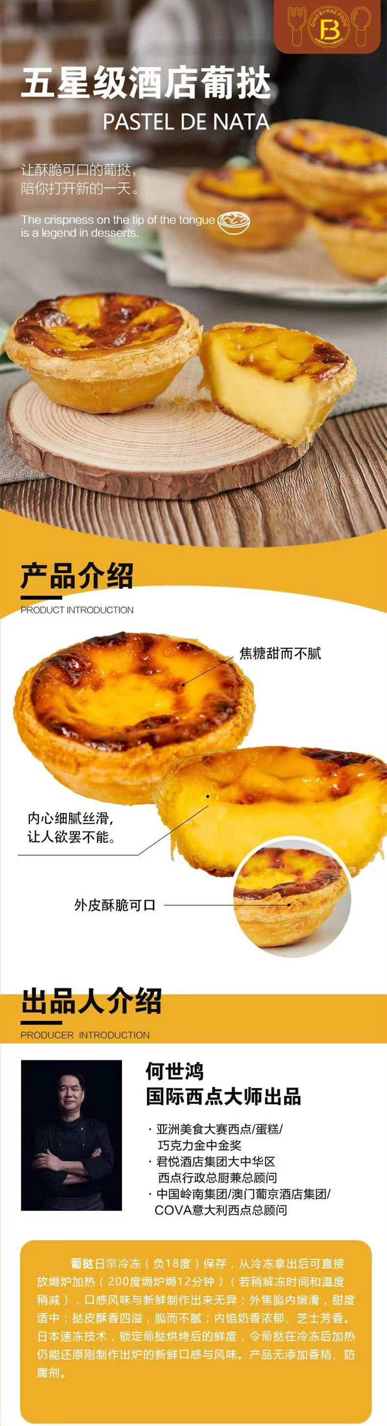 限时赠流沙包1包【好吃的不得了的蛋挞】乔拜恩五星酒店蛋挞 手工制作 口感酥脆 只需加热 就能享受五星级的味道