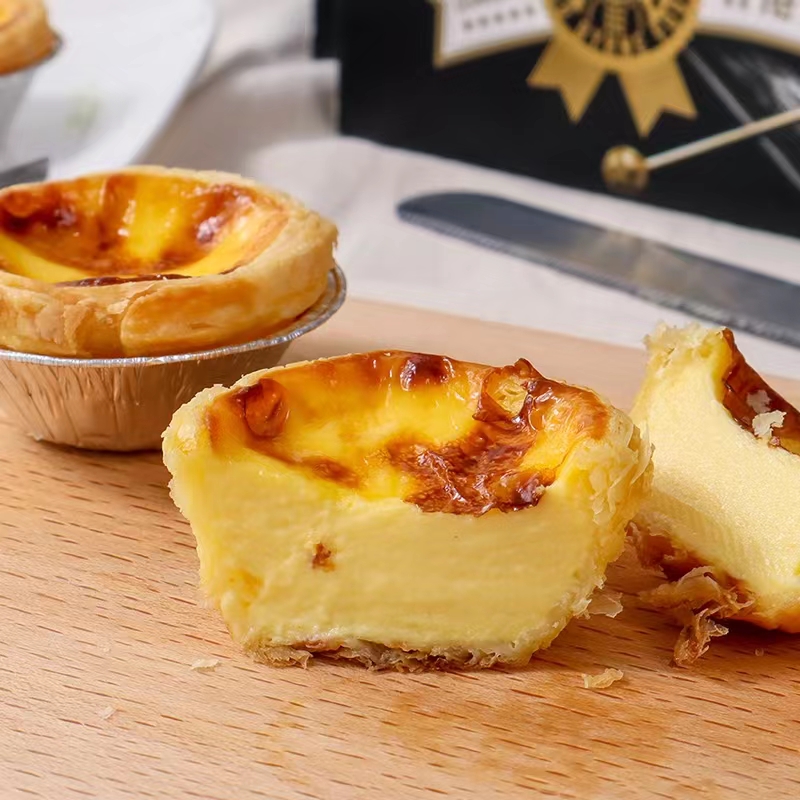 常规葡挞:制作时挞液需解冻、拆封后不耐存放,影响品质,因此每次一般会制作多个,容易吃不完。