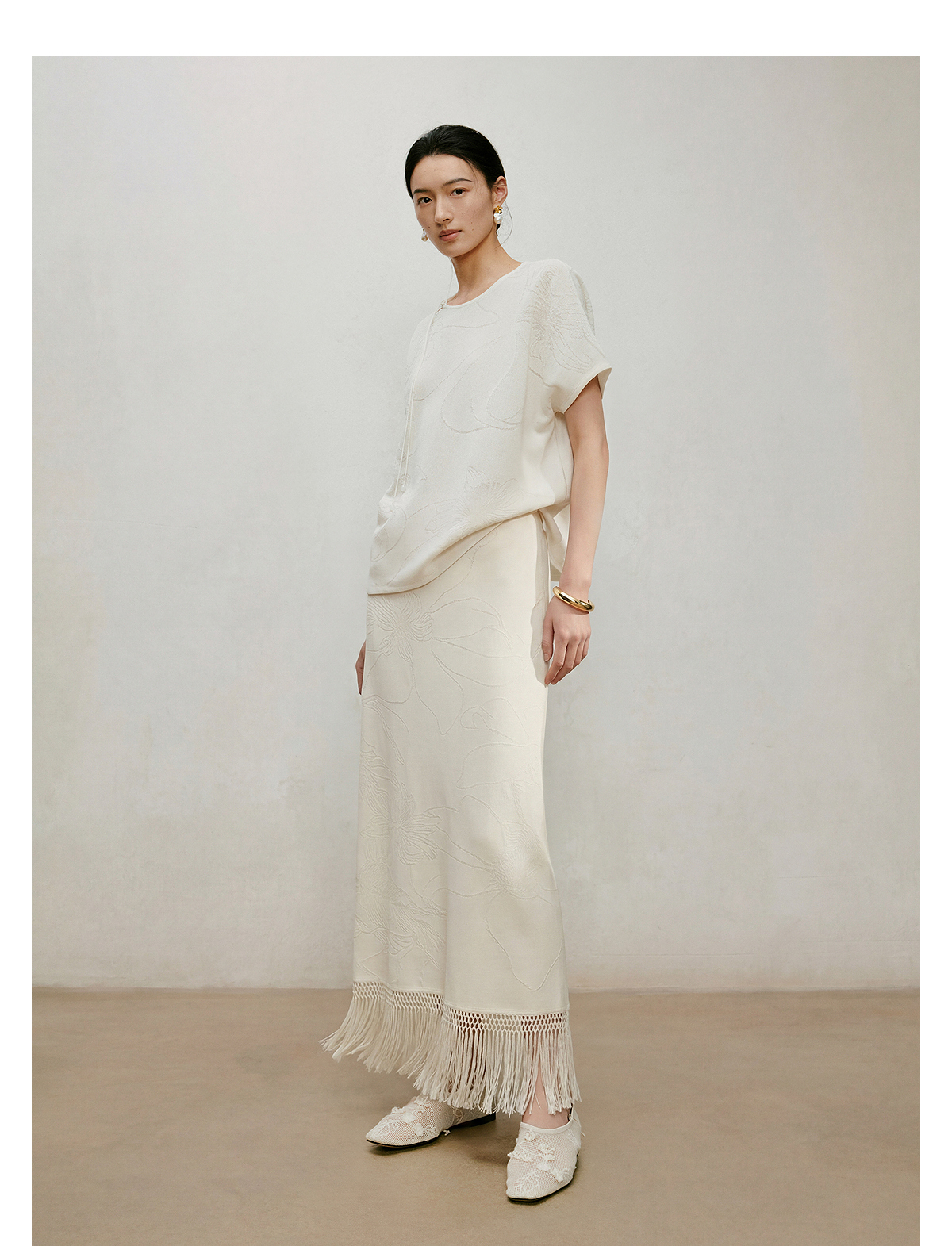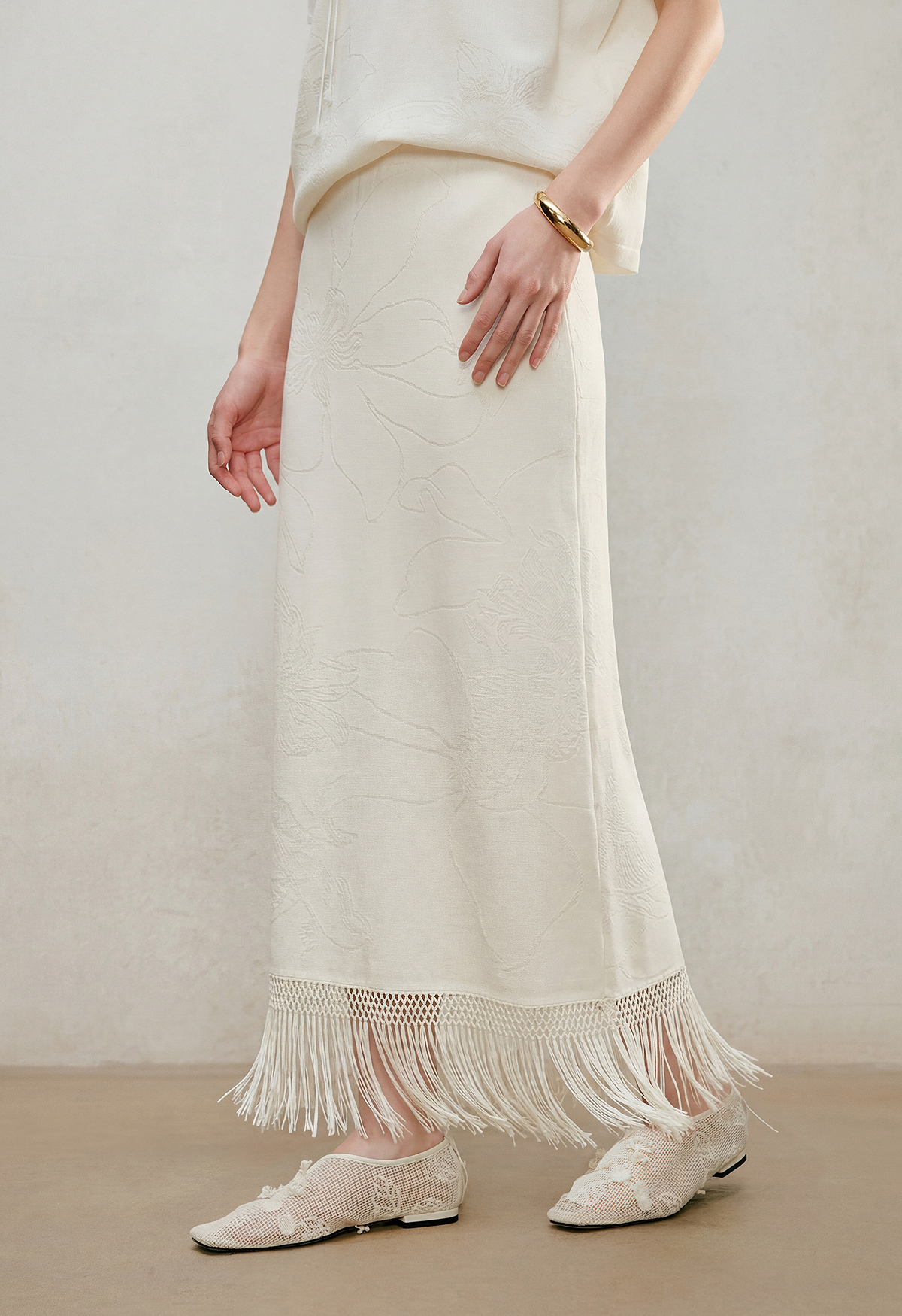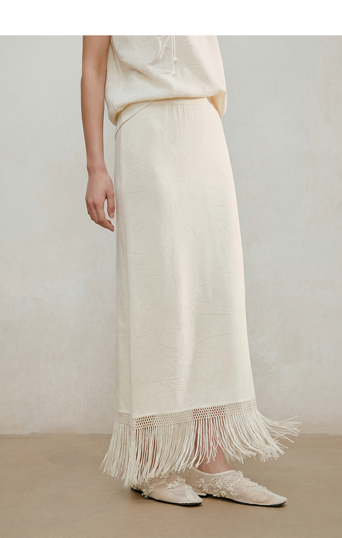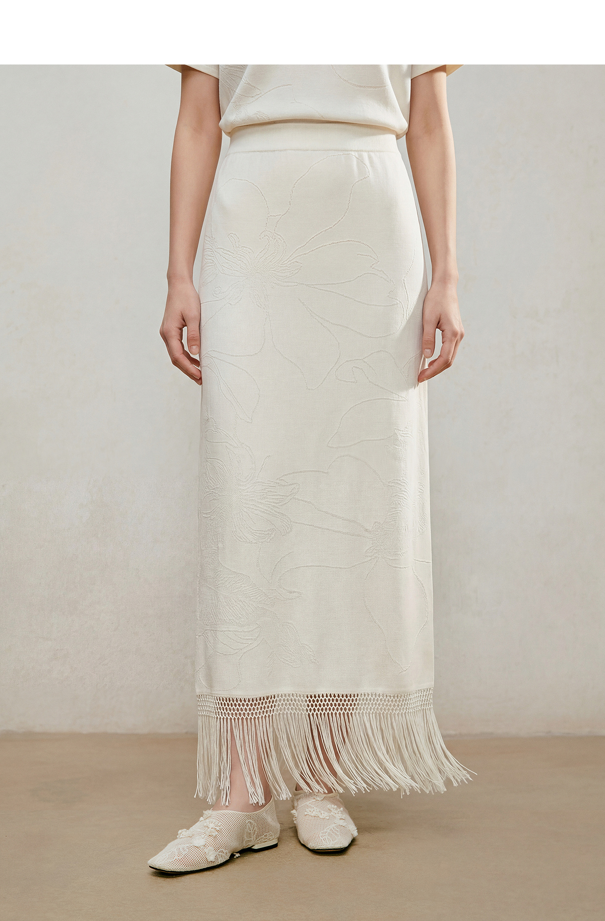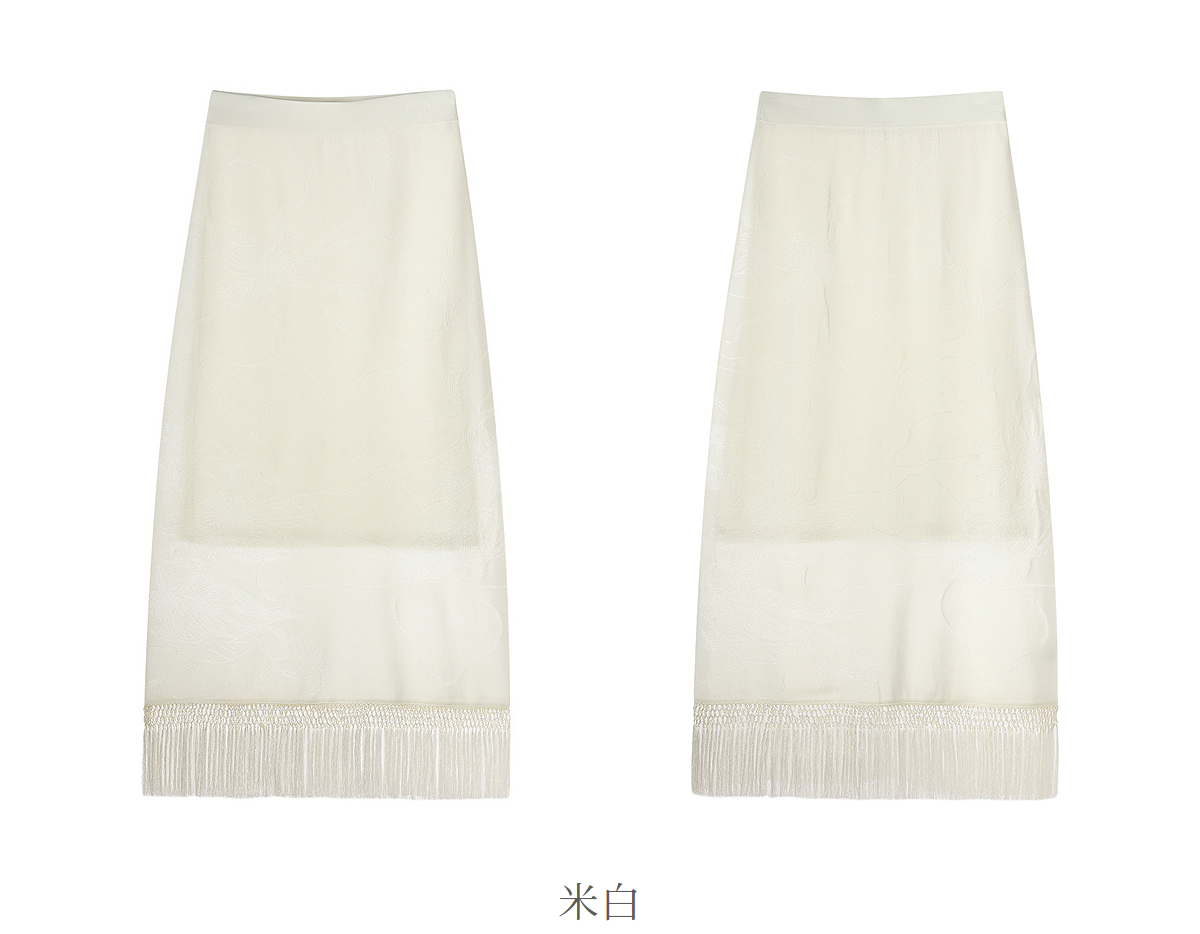 【林栖设计小店】手编流苏|米白提花百搭针织裙2026夏新款直筒毛织半身裙1962095