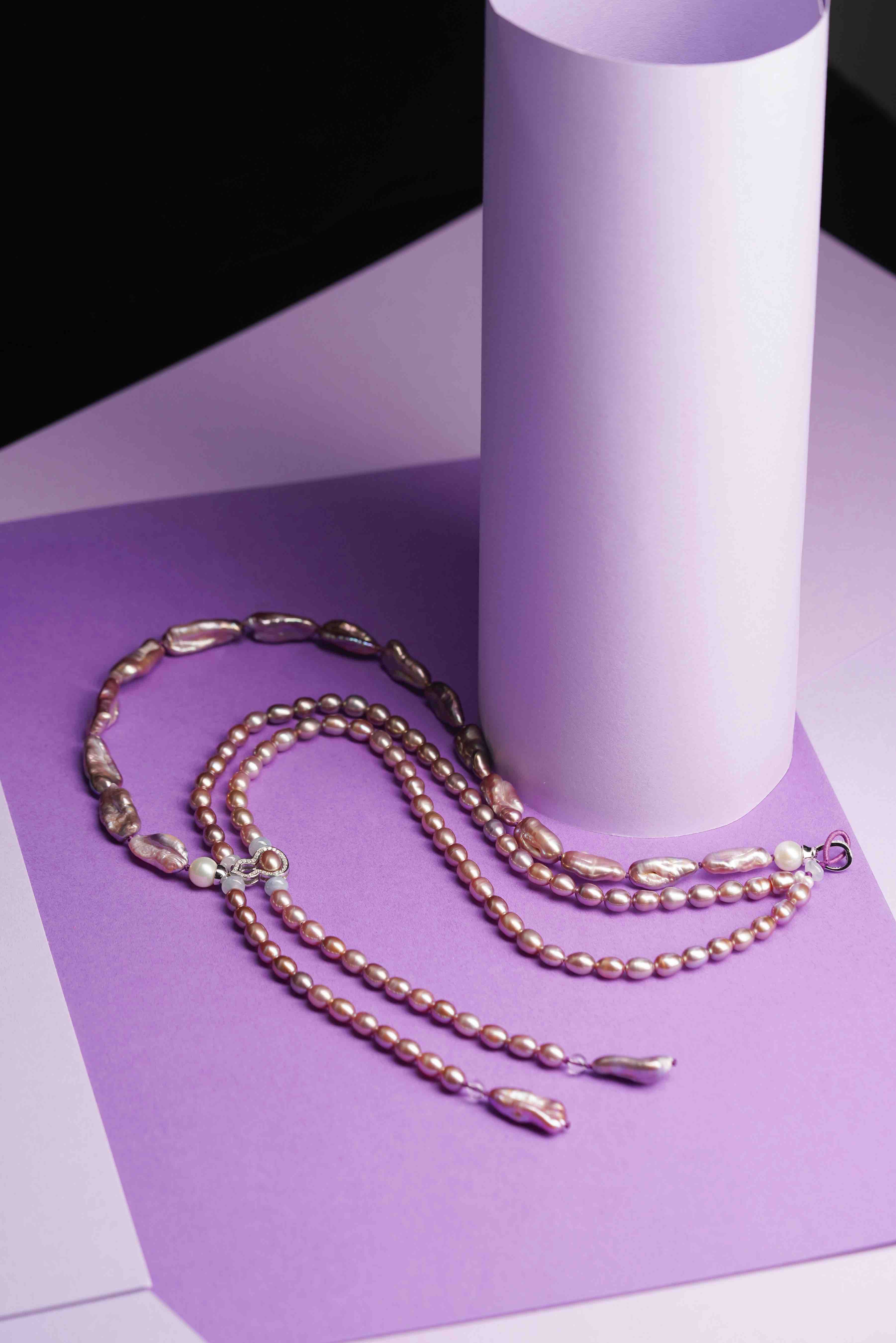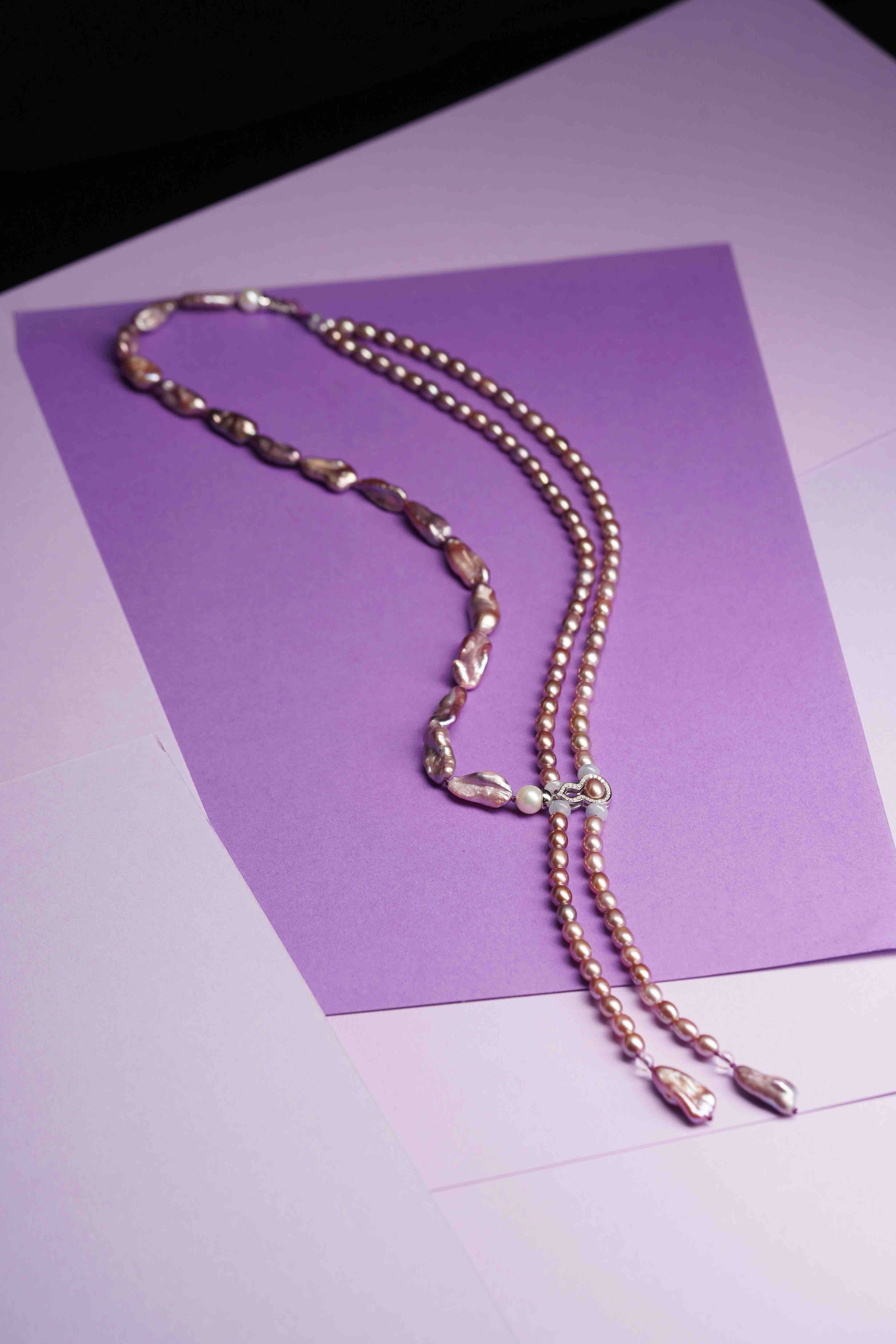 我们结合了两种粉紫色系珍珠:巴洛克 & 米珠