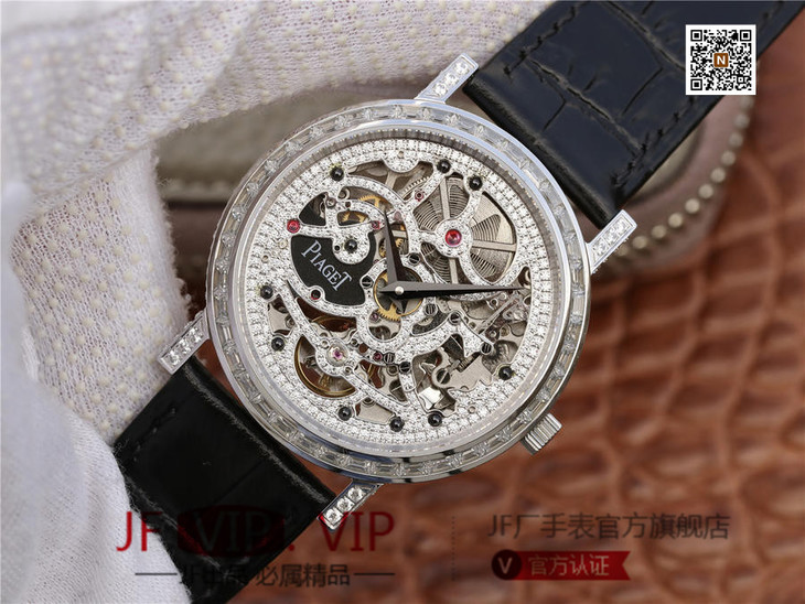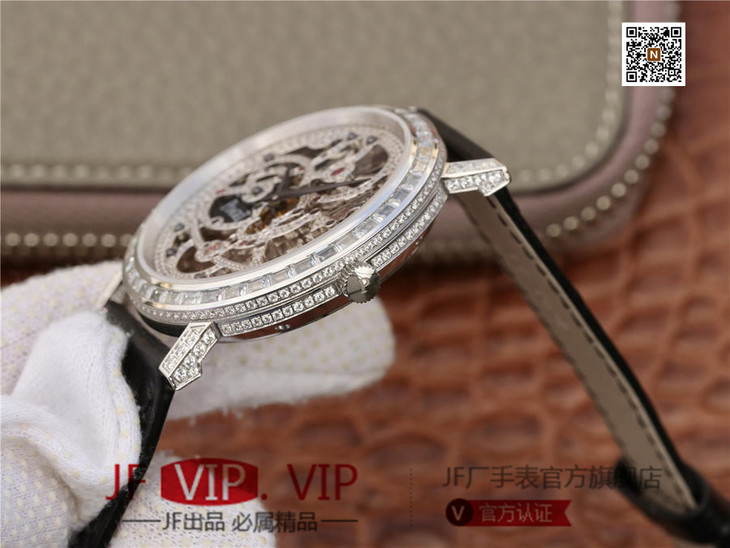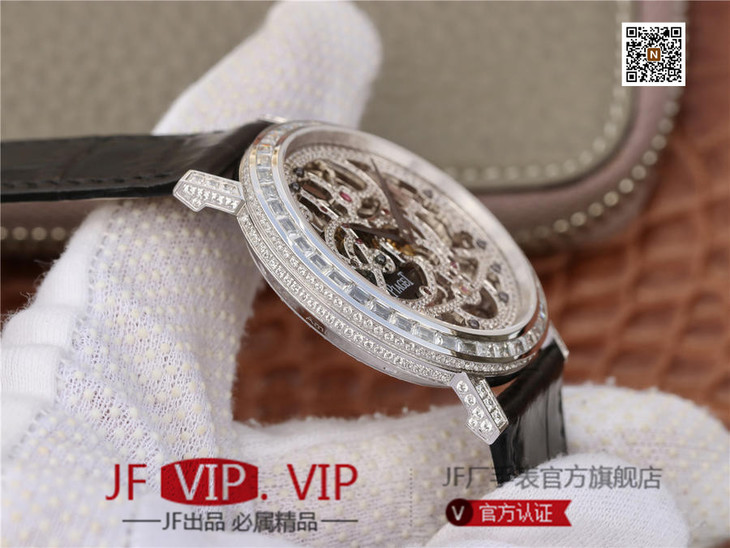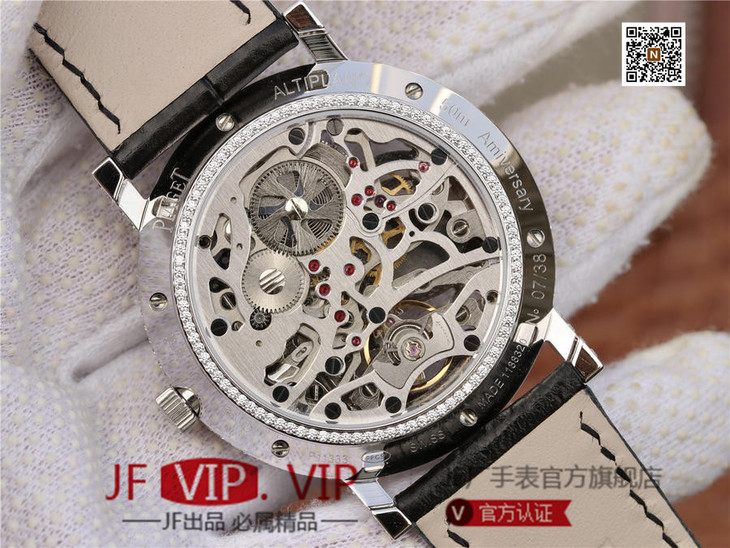 BBR伯爵超薄珠宝镂空腕表.搭配1200S全镂空手动上链机芯,动力储存72小时,研发耗时二年。推出伯爵 Aliplano超薄腕表尺寸为40mm