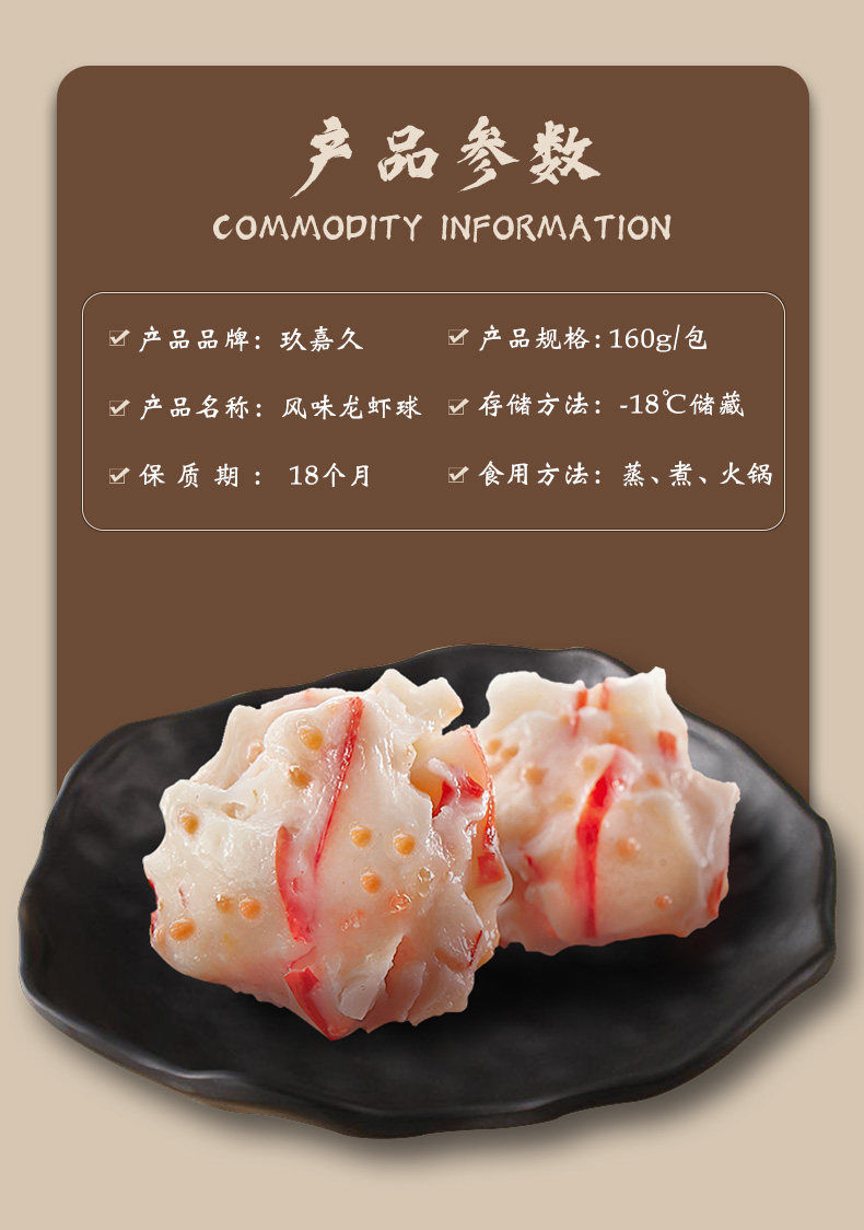 【冷冻】玖嘉久 风味龙虾球 160g/袋