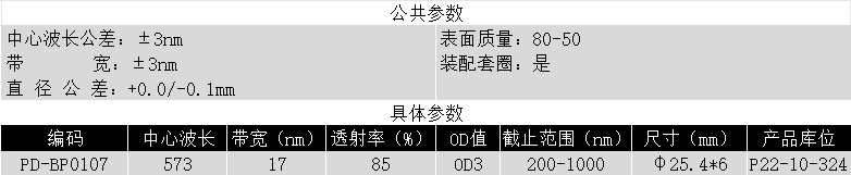BP573/17K OD3@200-1000 T>85% Φ25.4*6 带通滤光片 (带套圈)