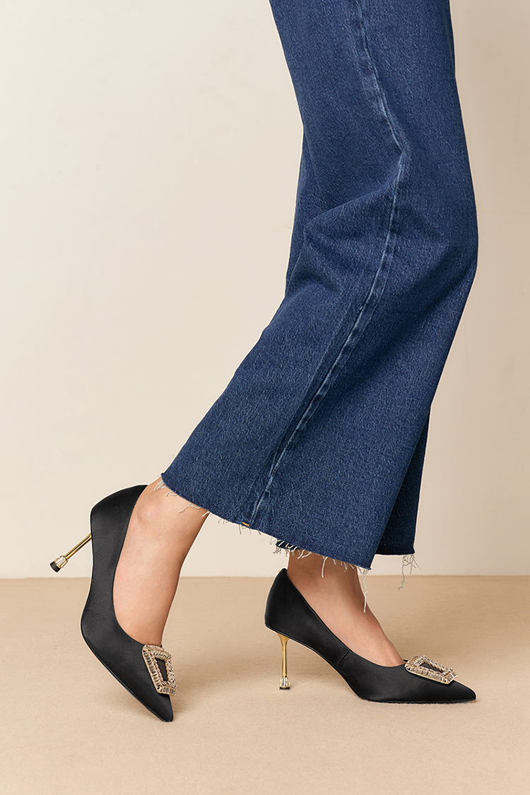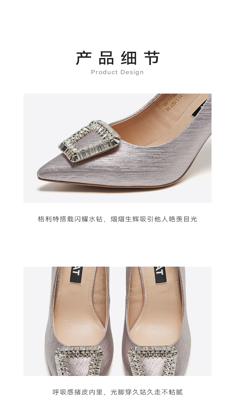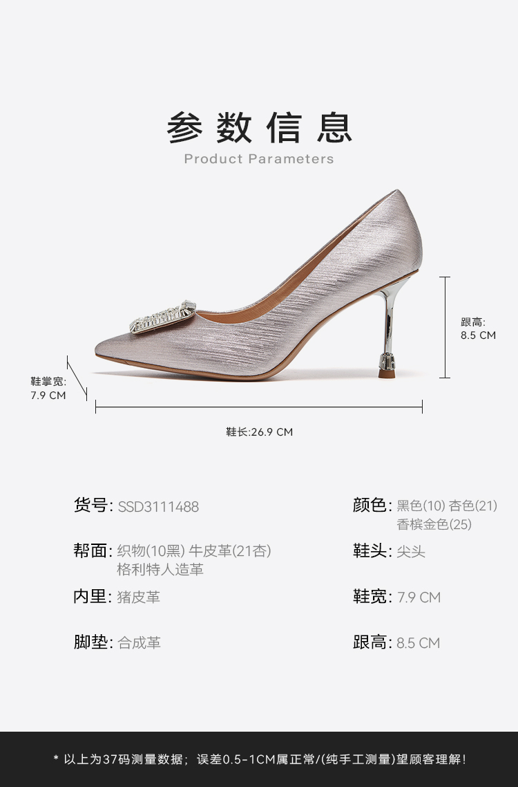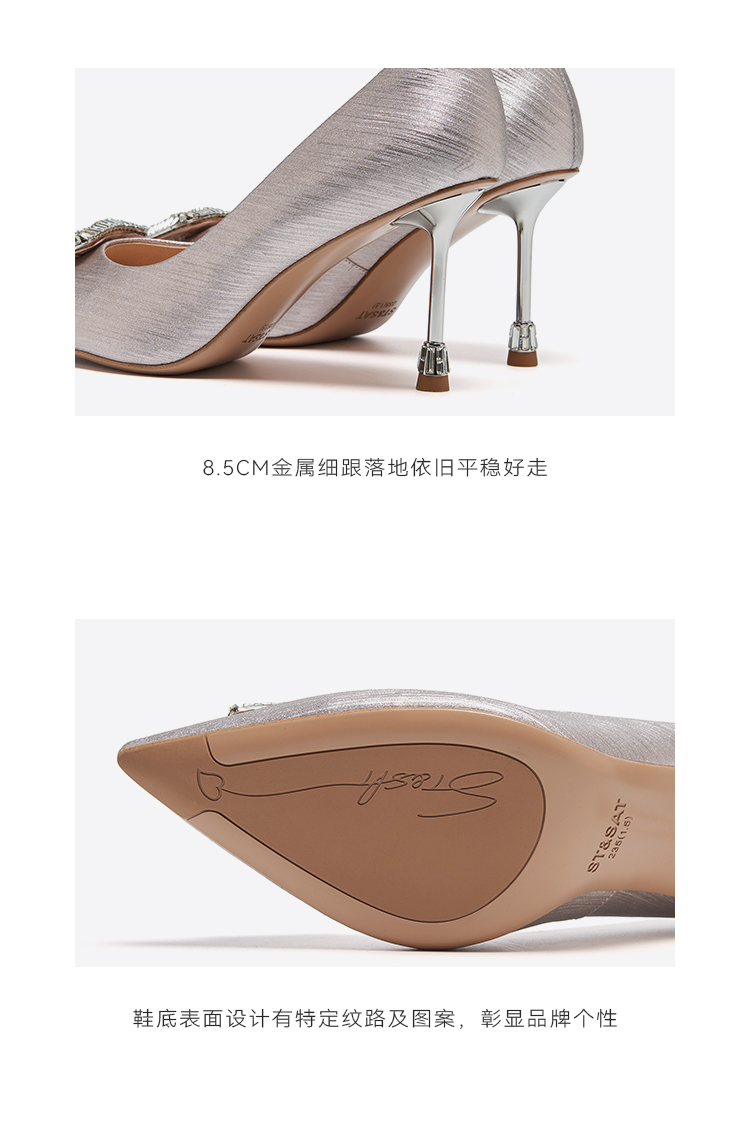 星期六法式水钻方扣尖头高跟鞋SSD3111488