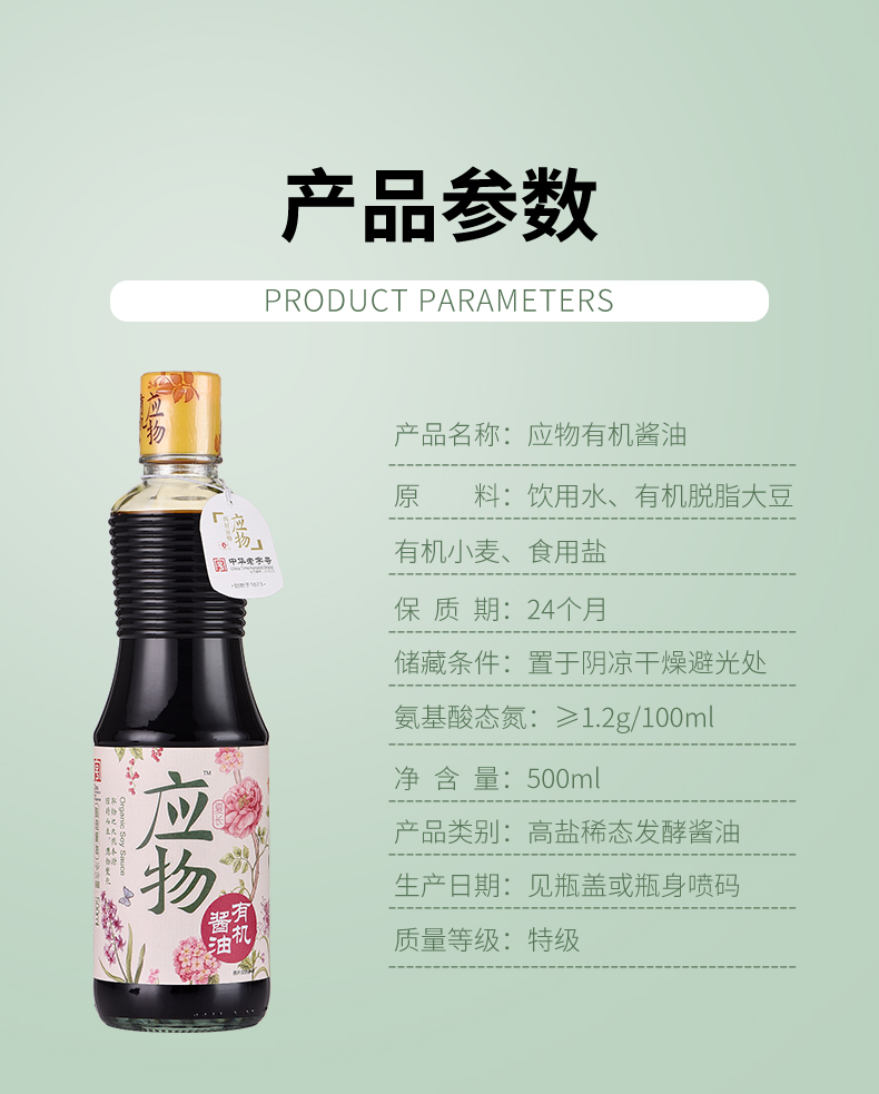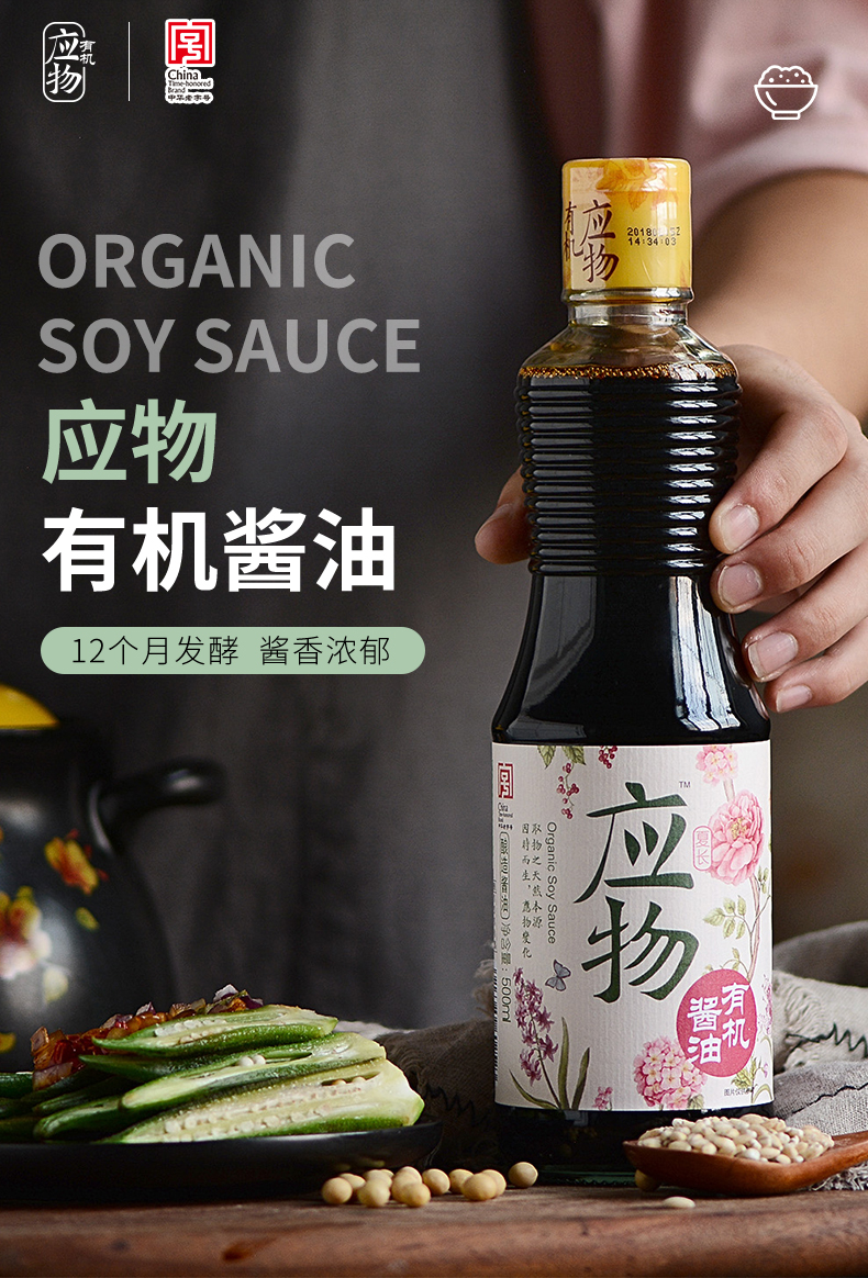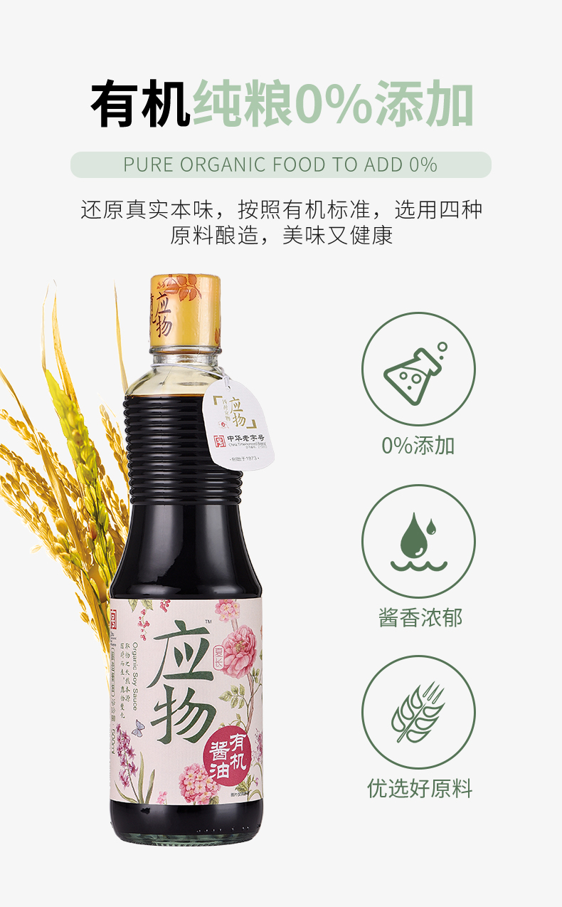 应物有机酱油特级生抽无添加纯粮食酿造减盐型家用酱油调味品拌面