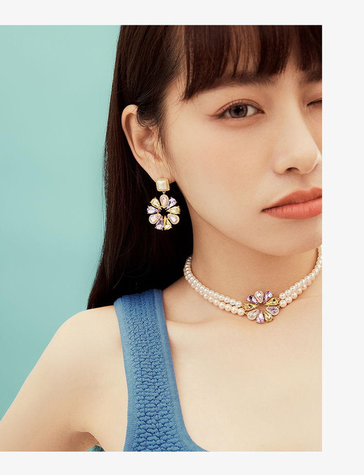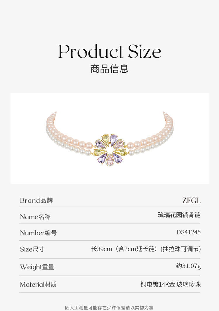 ZEGL设计师秘密花园系列花朵双层项链女轻奢高级感珍珠锁骨链颈链
