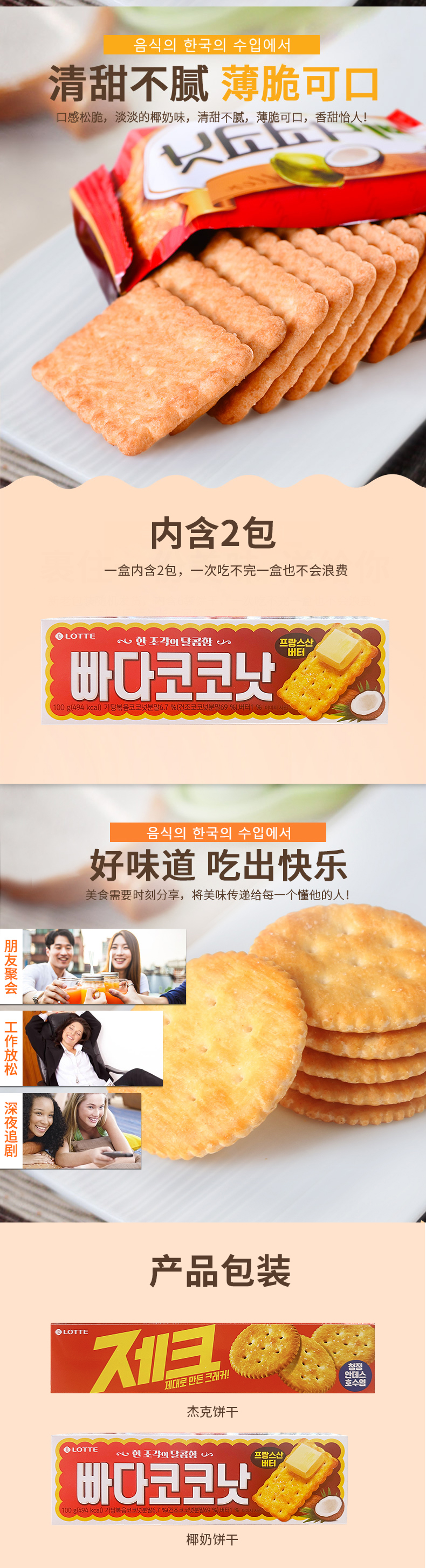 韩国进口乐天杰克|椰奶饼干100g