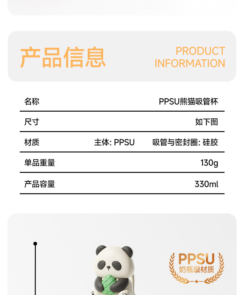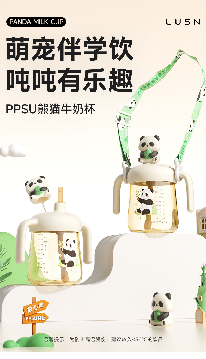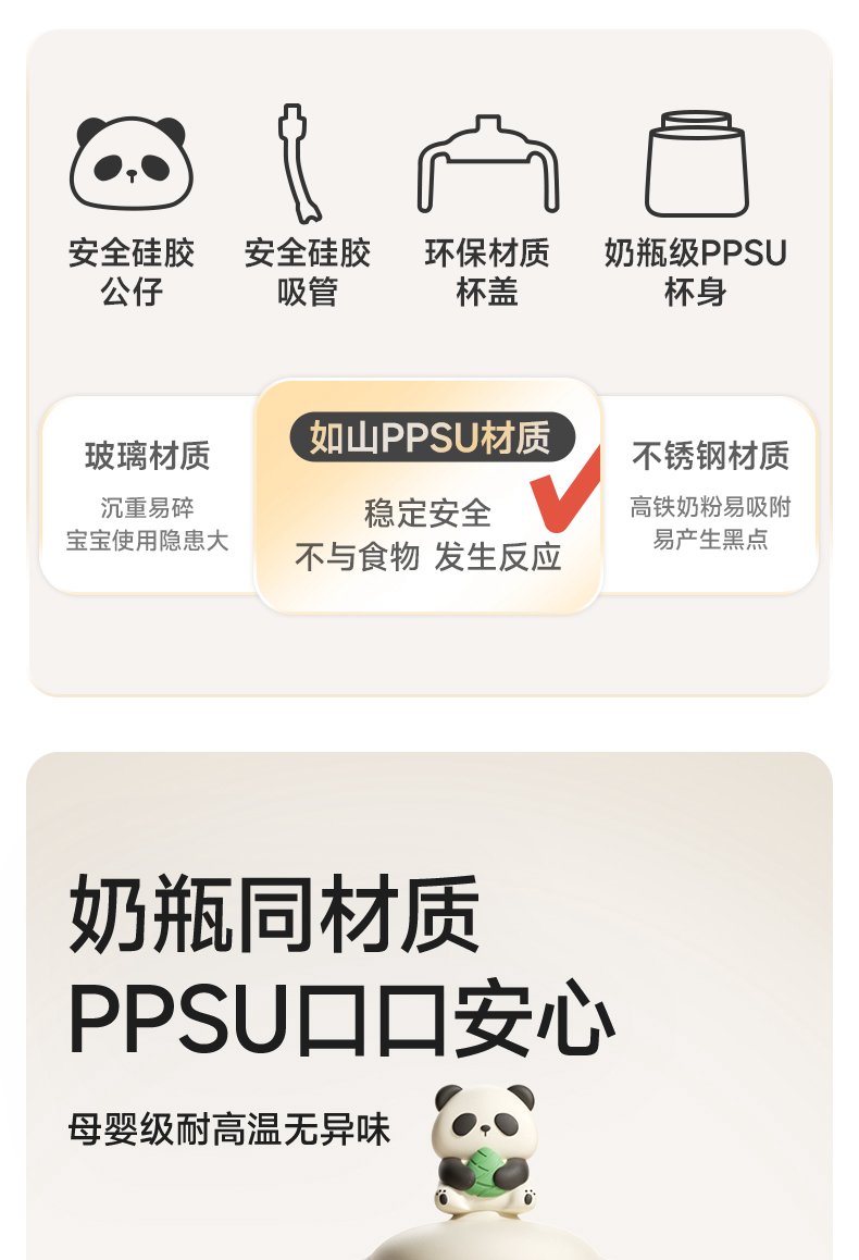 【积分商城】如山PPSU儿童吸管杯喝水杯 家用直饮杯 便携学饮杯