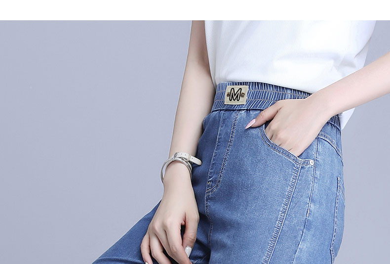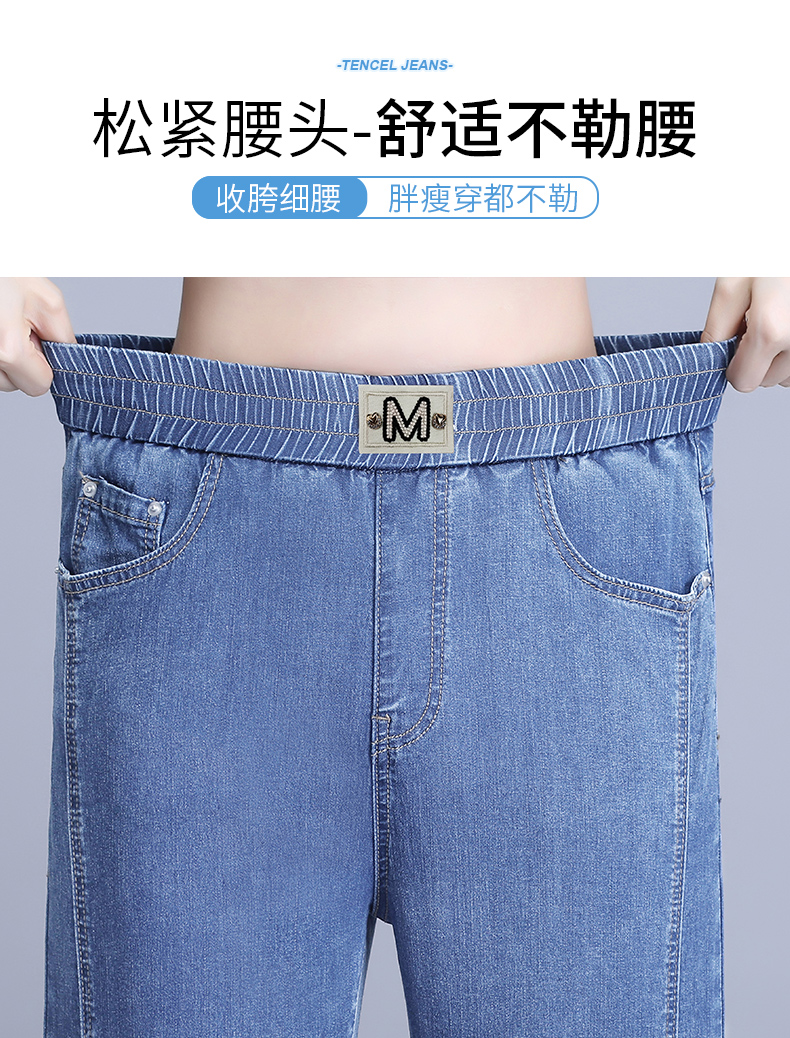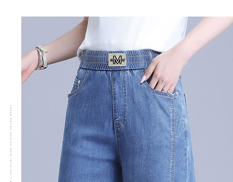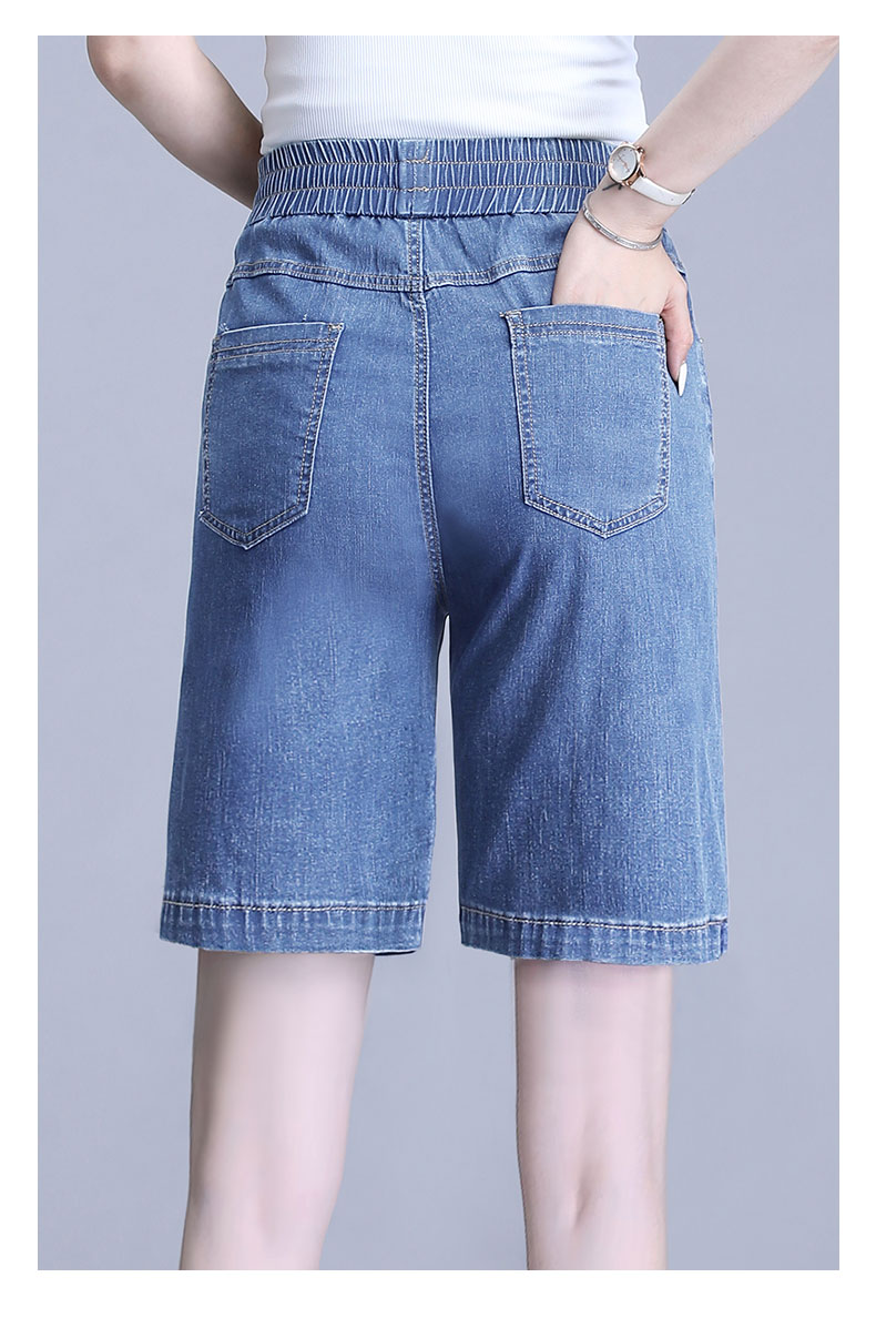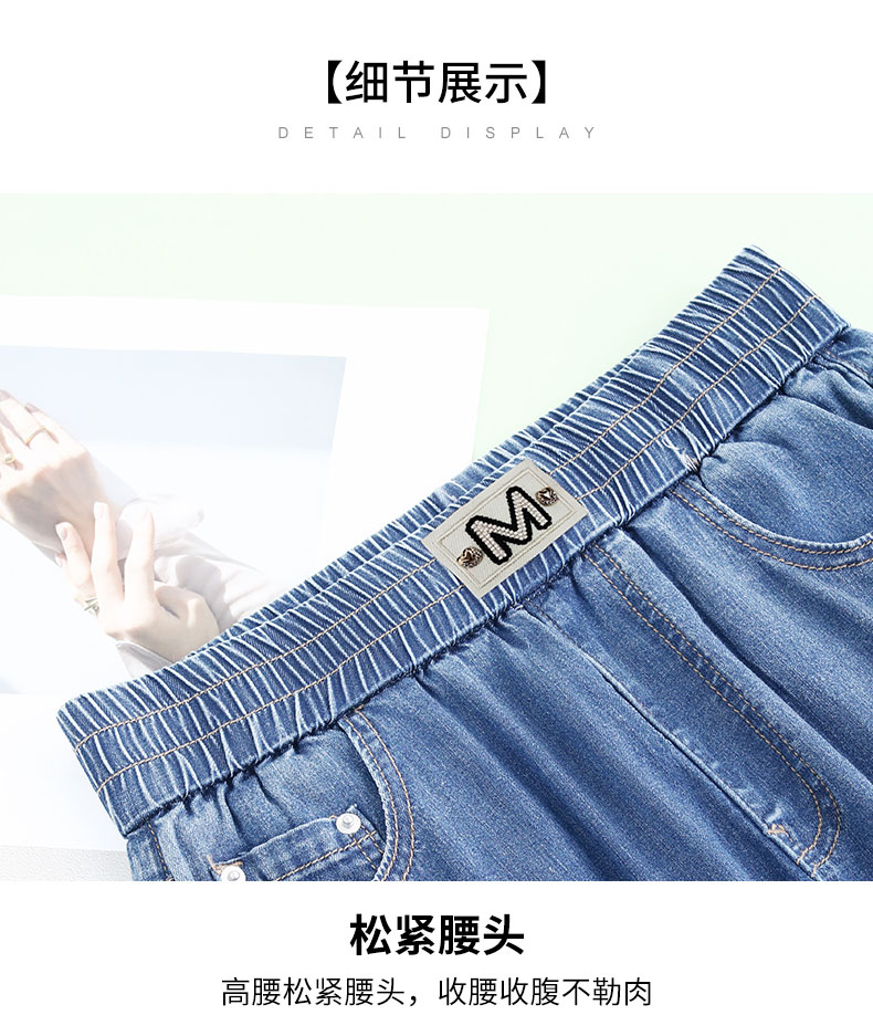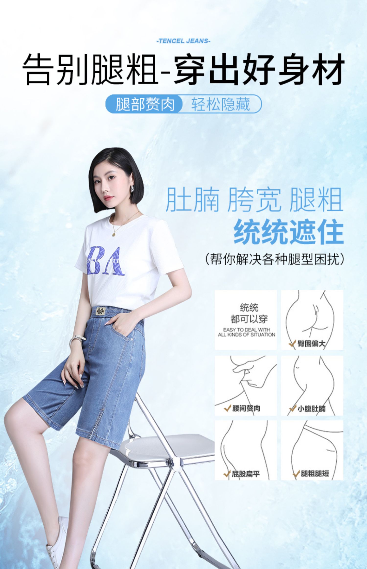大码天丝牛仔短裤女夏季薄款新款宽松胖mm松紧腰冰丝裤子五分外穿