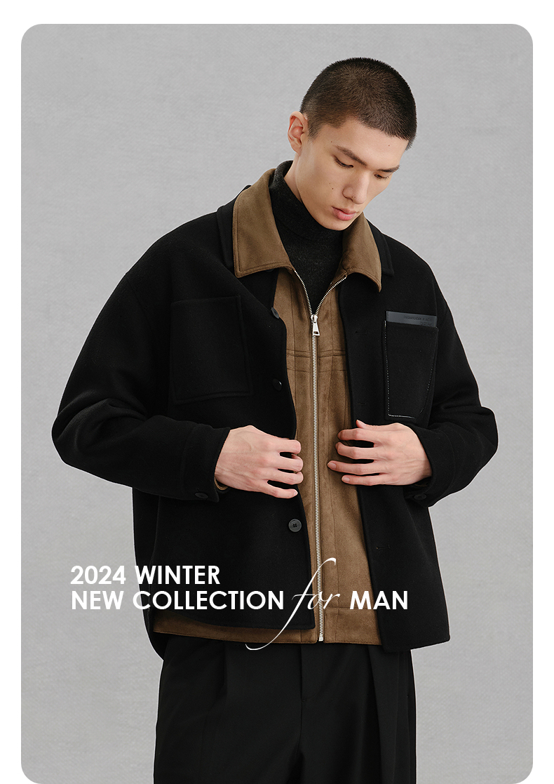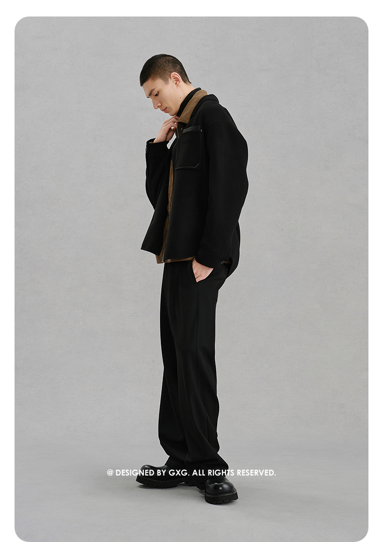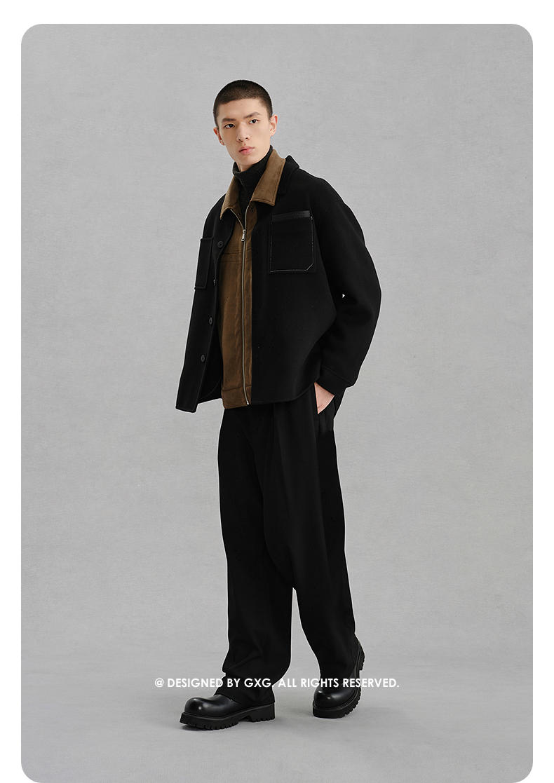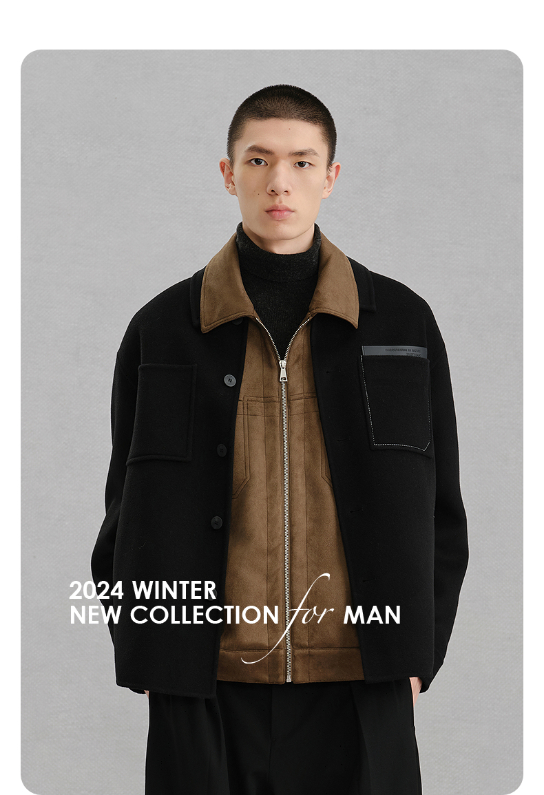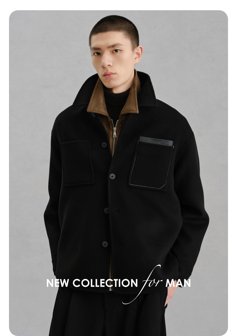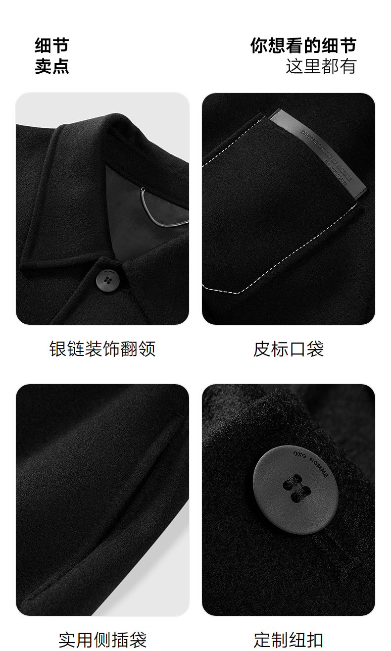 GXG男装 黑色全羊毛通勤短大衣外套 冬季热卖G24X064024