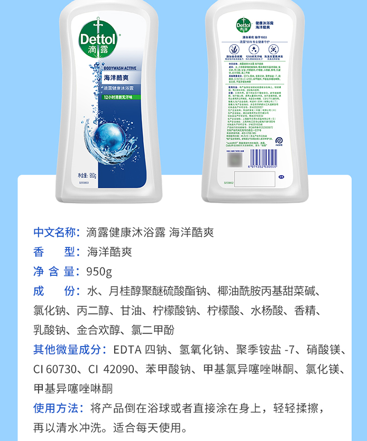 滴露健康沐浴露海洋酷爽950克