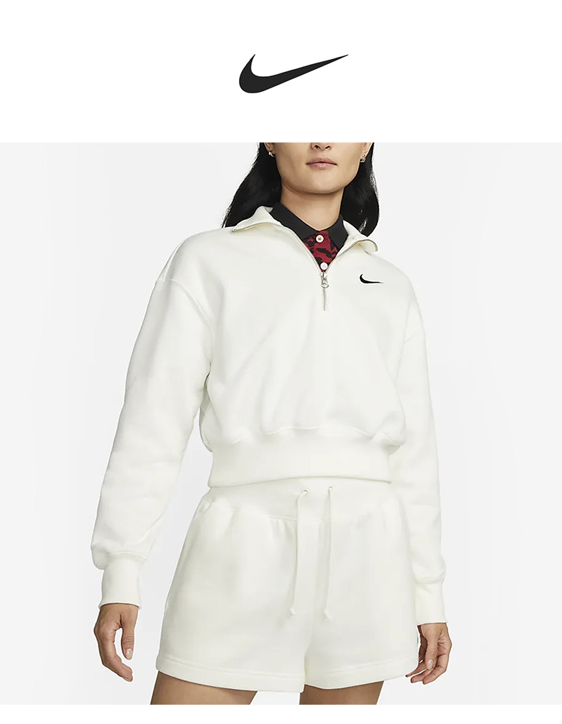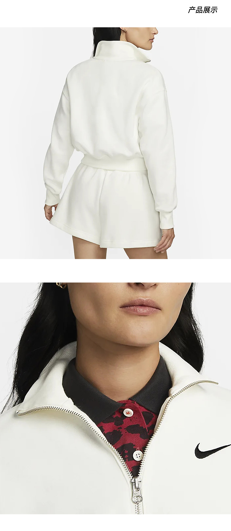 Nike/耐克女子加绒半拉链短款卫衣DQ5768-133