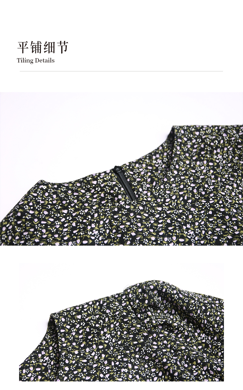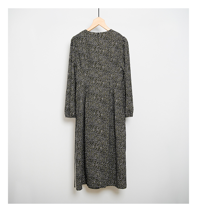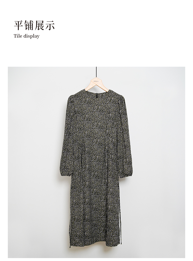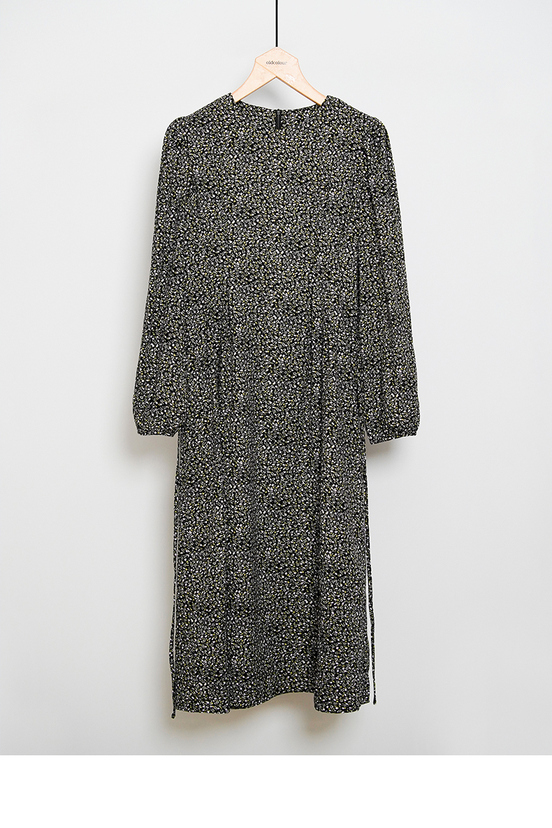 oldcolour春秋款黑色圆领碎花气质宽松长袖连衣裙女DN13103023