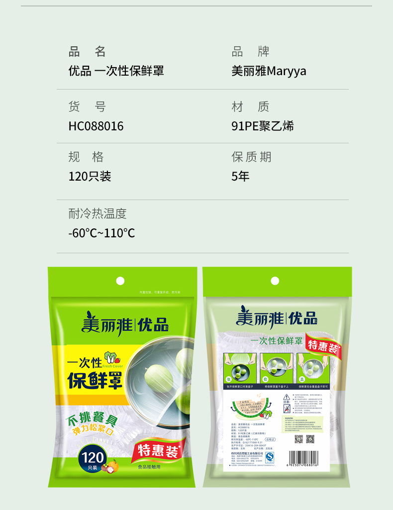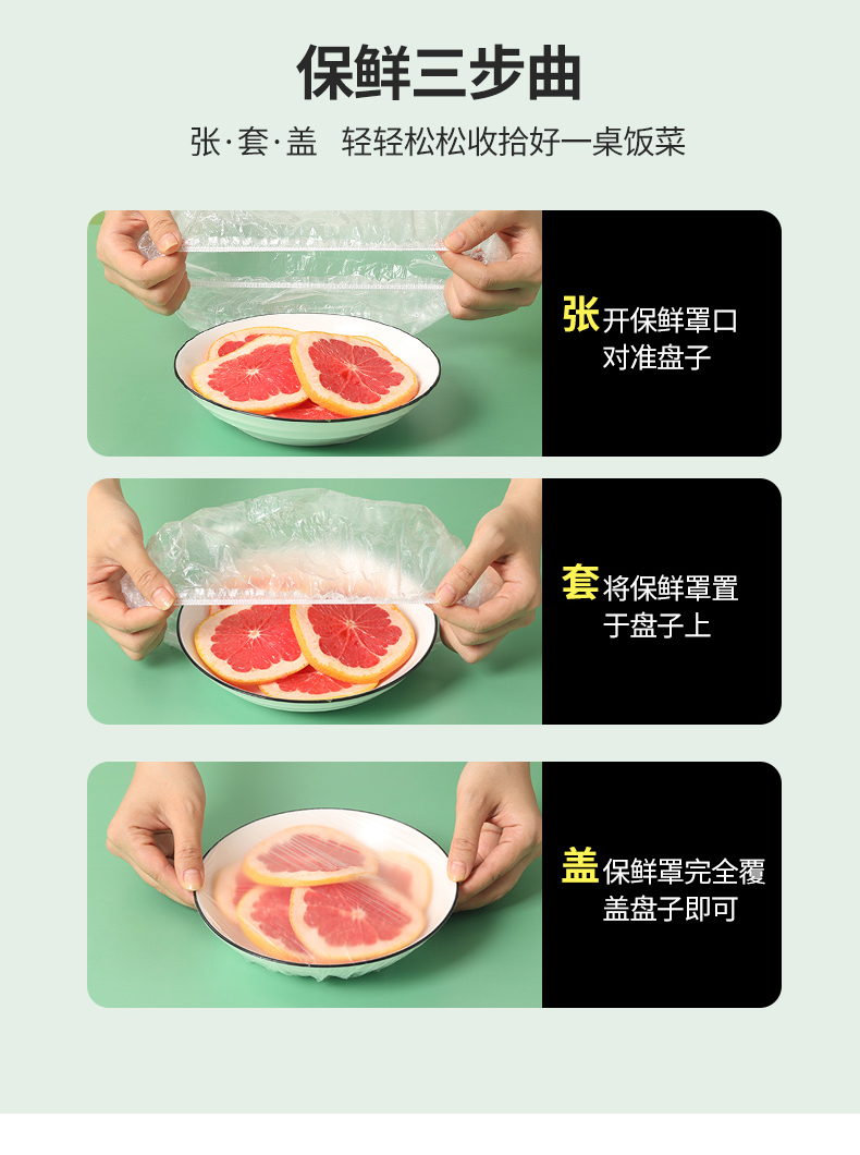 美丽雅一次性保鲜膜套食品级家用保鲜专用袋带松紧封口