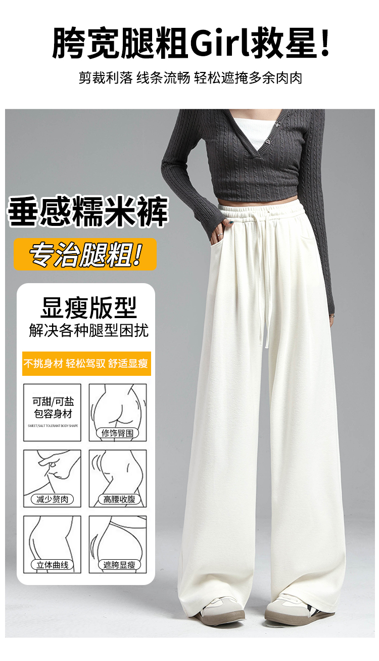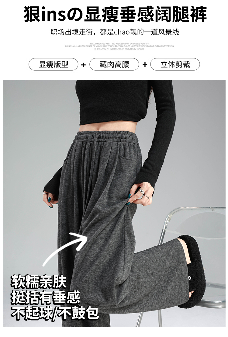*( 三种裤长任选,高矮胖瘦都能穿~)糯米裤女秋冬2025新款软糯直筒垂感显高显瘦阔腿裤小个子慵懒拖地裤