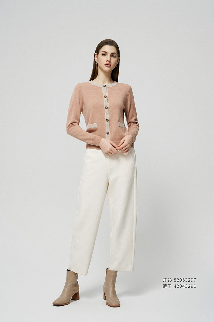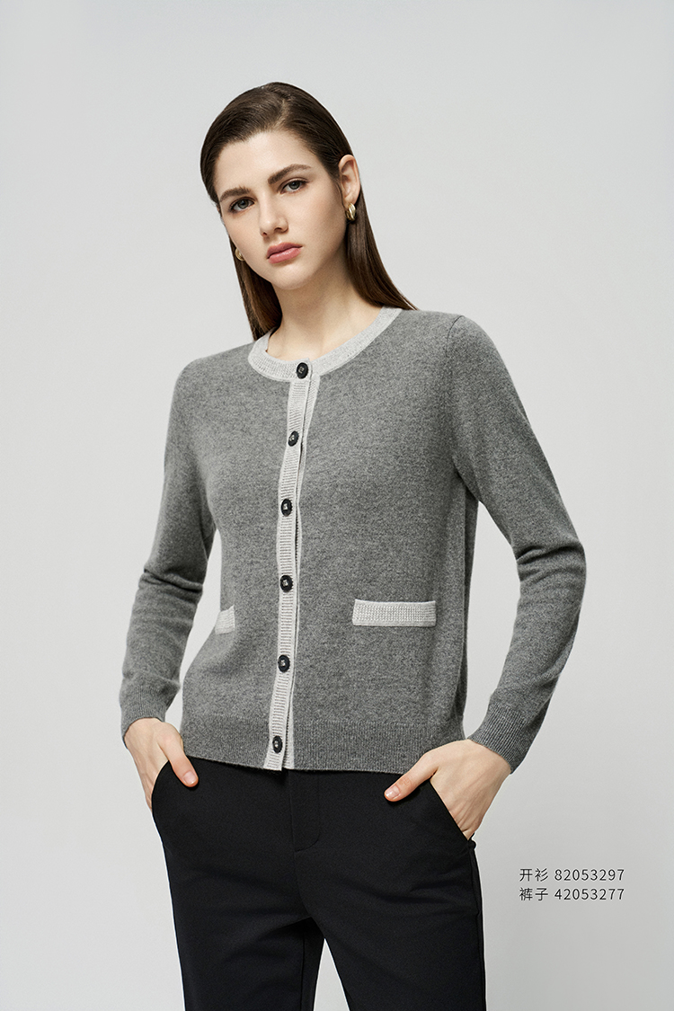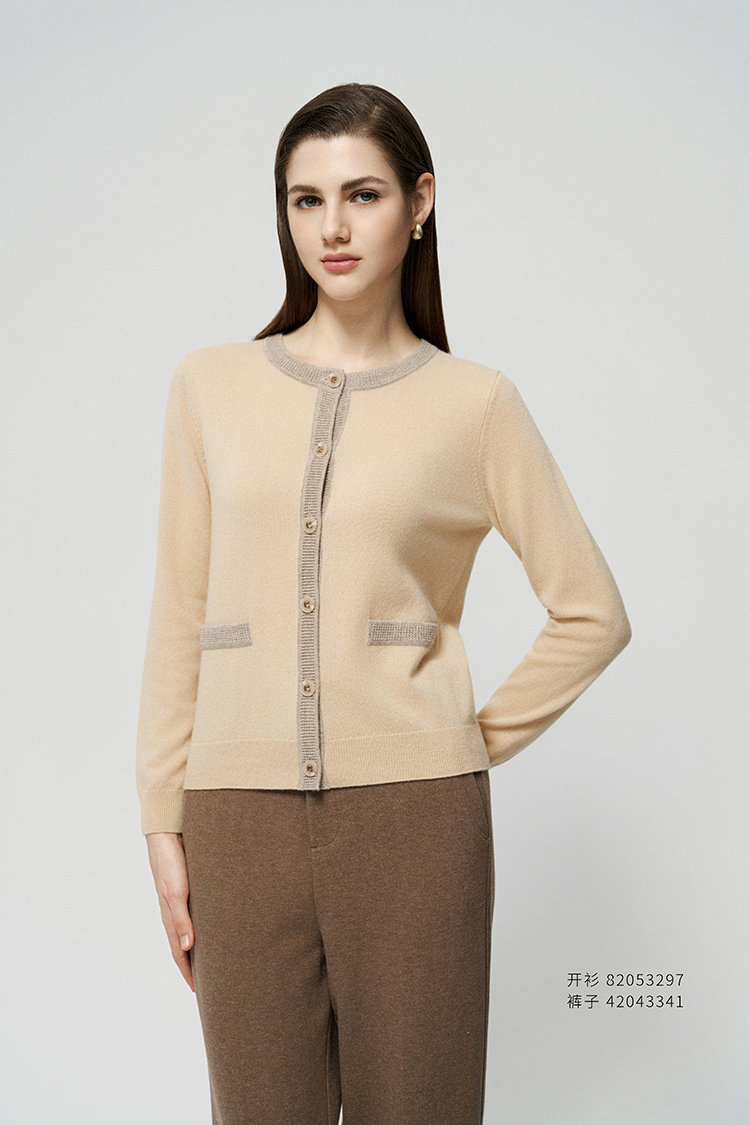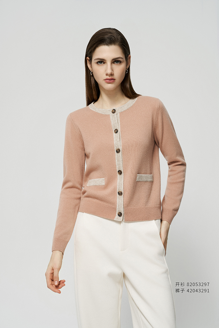 【条纹撞色针织开衫】羊绒世家25年秋冬新品女士100%山羊绒外套