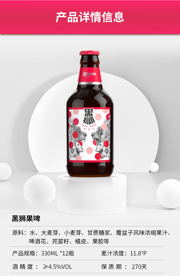 雪花啤酒 黑狮玫瑰红果啤 330ml 瓶装【覆盆子口味】
