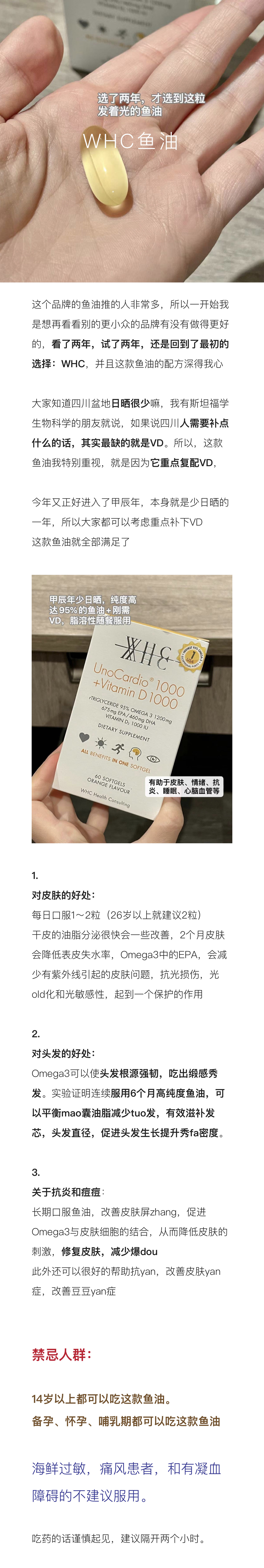 WHC小千金深海鱼油rTG结构95%高纯度Omega3维生素D3成人60粒