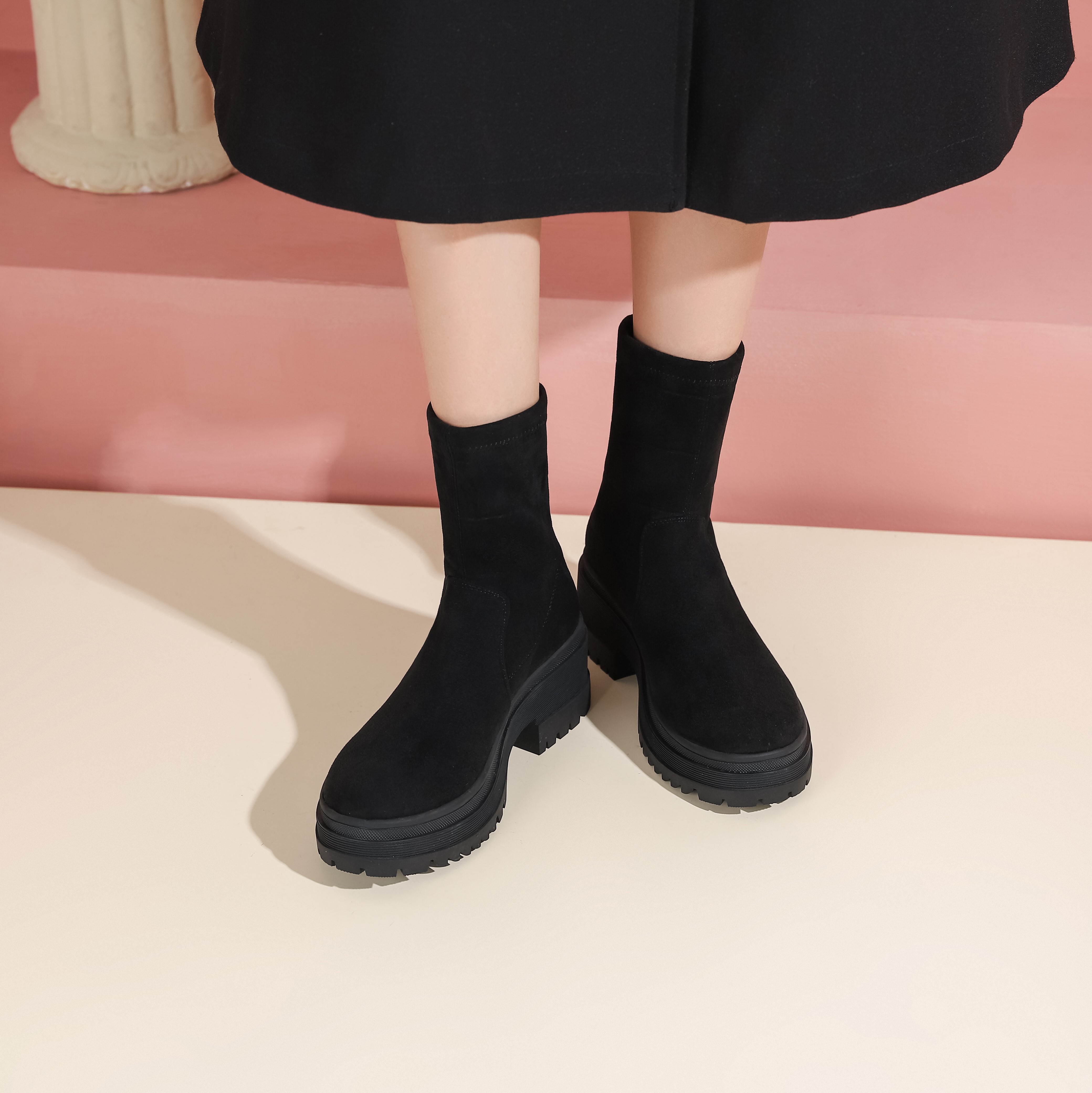 西村名物冬季新款超轻厚底增高防滑舒适切尔西靴T22DS43831
