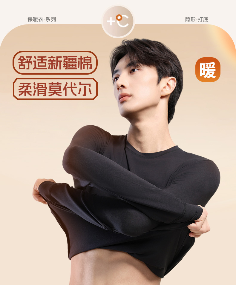 【秋冬新品】洁丽雅男士保暖内衣轻暖混纺亲肤舒适修身保暖套装男