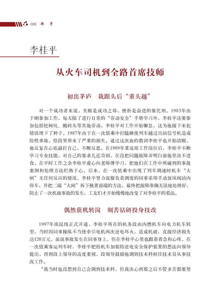 本书旨在向中国共产党成立100周年献礼,通过对柳州铁道职业技术学院毕业的各位校友在各个工作岗位上奋斗历程的真实描述,记载他们将个人理想追求融入中国铁路梦的行动足迹,展现他们所取得的辉煌业绩和艰苦奋斗、实干创新的宝贵精神。本书充分展示了学校人才培养成果,激励广大在校学子成长成才,对学校未来发展、人才培养具有十分重要的借鉴作用和参考意义。