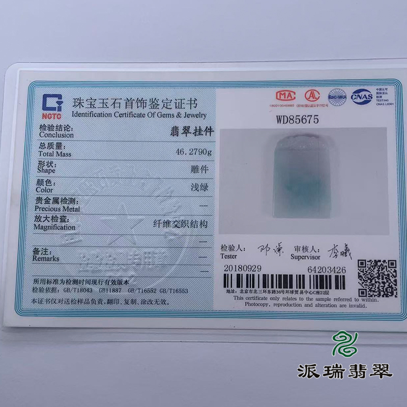 派瑞翡翠 翡翠无事牌 糯种 浅绿