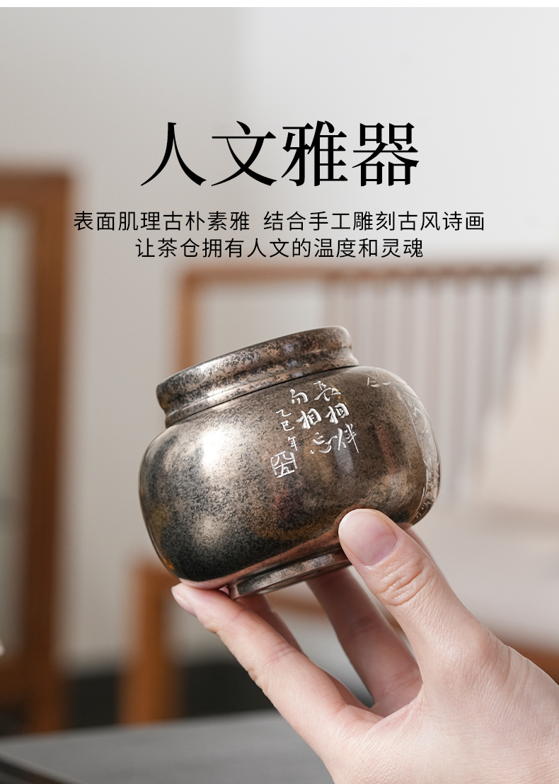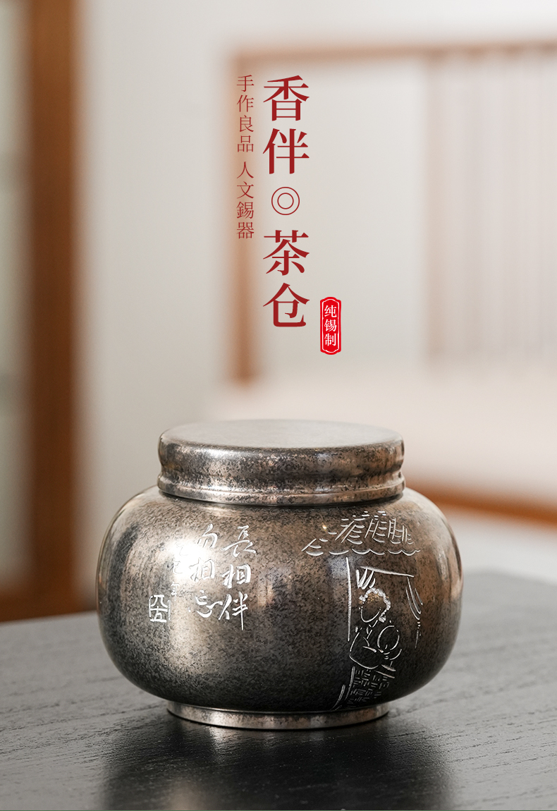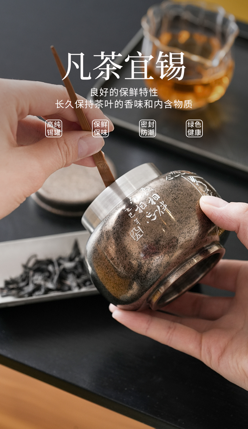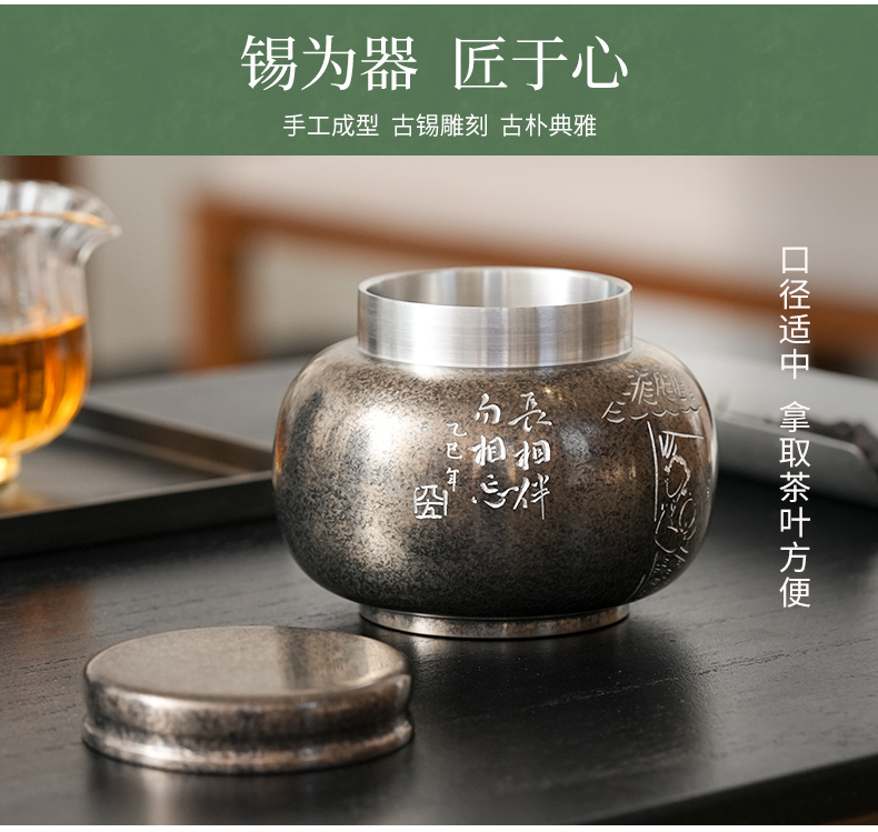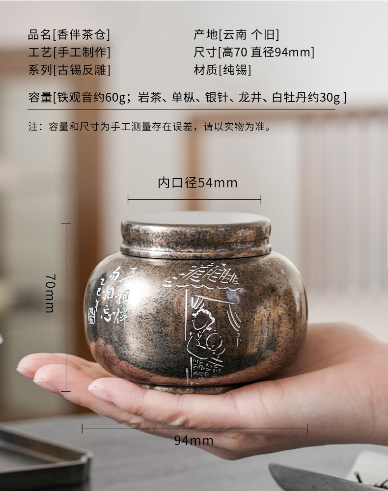 斑锡龙小号锡罐香伴茶仓复古纯锡茶叶罐密封储茶云南个旧手工锡器