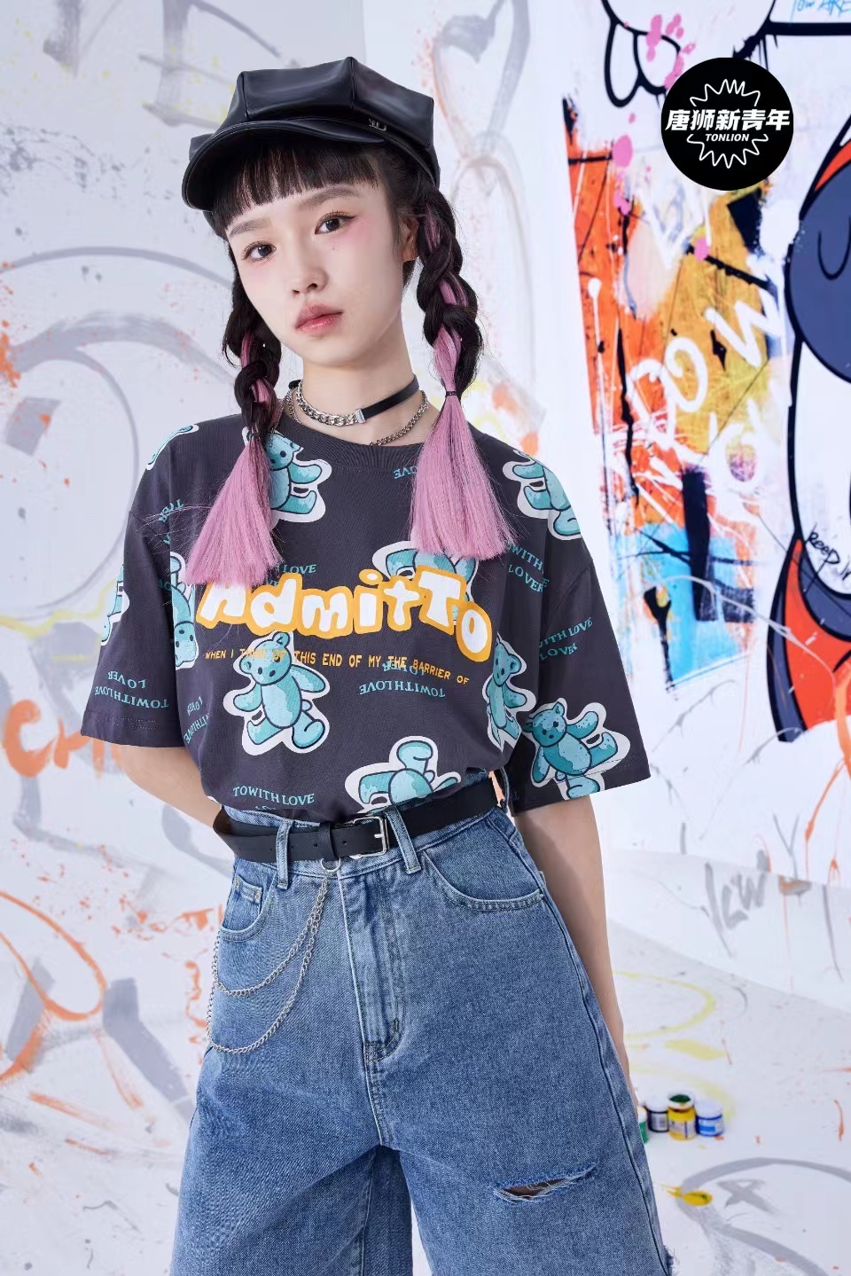 唐狮12723602270622泰迪熊联名情侣款满身印体恤