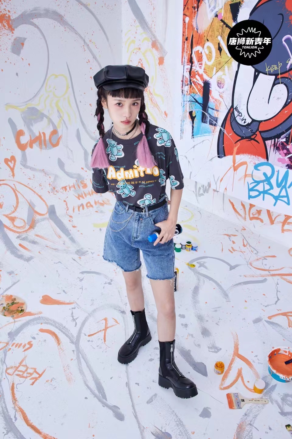 中款体恤,H版型,包容性强,泰迪熊联名情侣款,男女同款,满身印时尚潮酷,纯棉面料柔软透气吸汗,穿着舒适。05116334