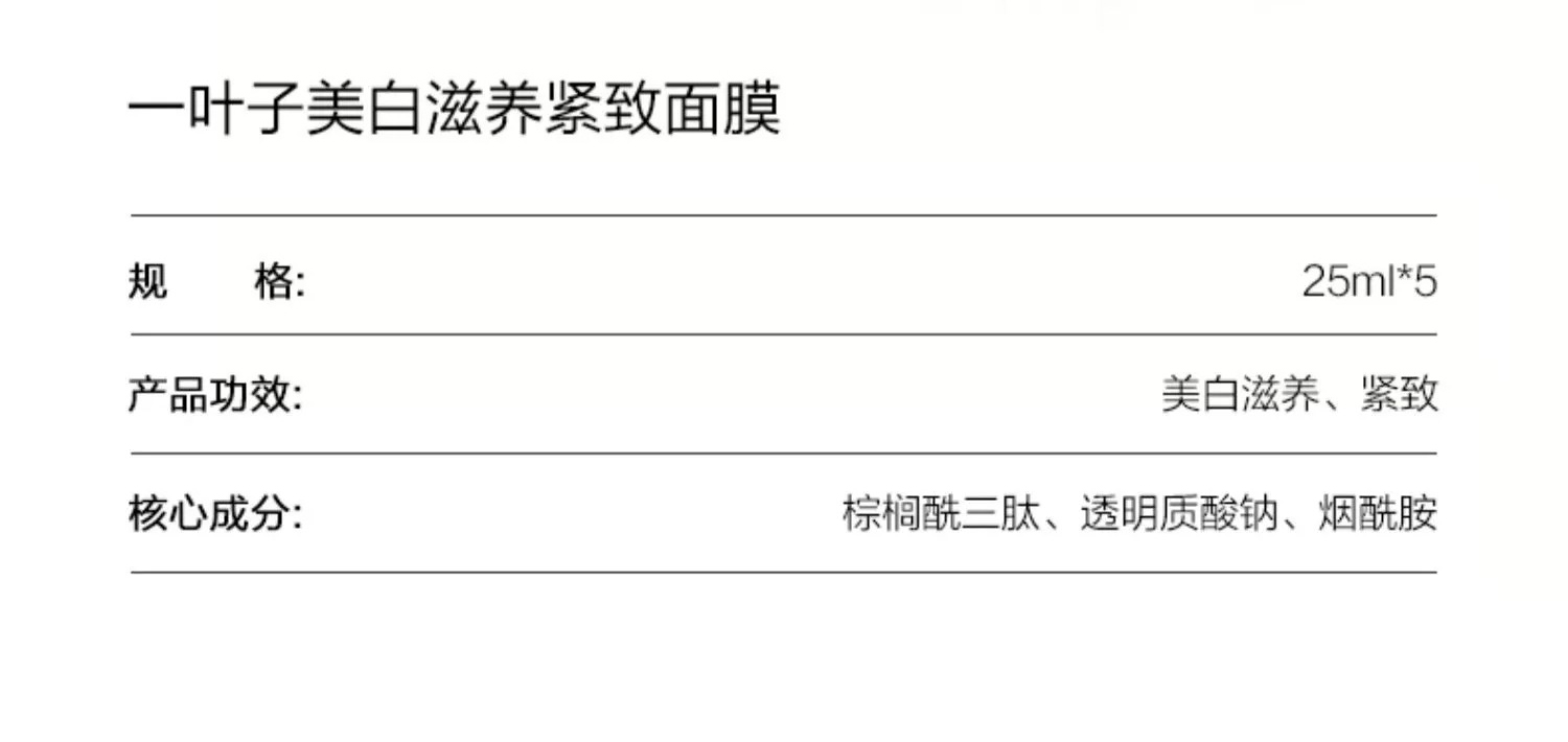 一叶子美白滋养紧致面膜-烟酰胺持证美白淡斑补水保湿熬夜学生党