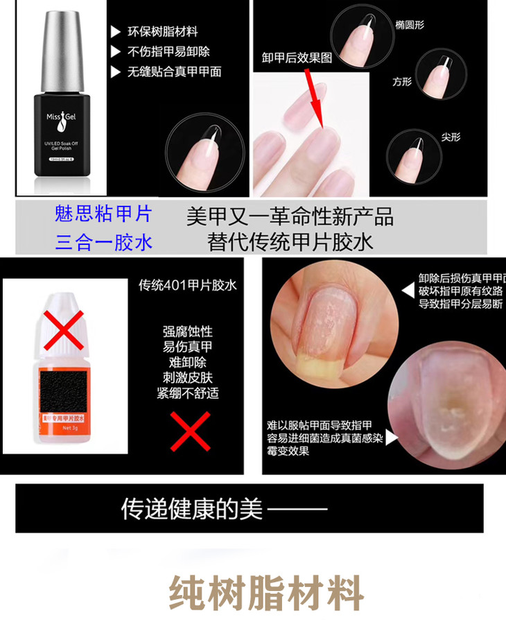魅思 (索芙娜)粘甲片三合一胶水//即日起发绿色 包装//(可做底胶使用)贴甲片不用上底胶,处理甲面后直接贴,冬季建议刻磨甲片凹槽处再贴