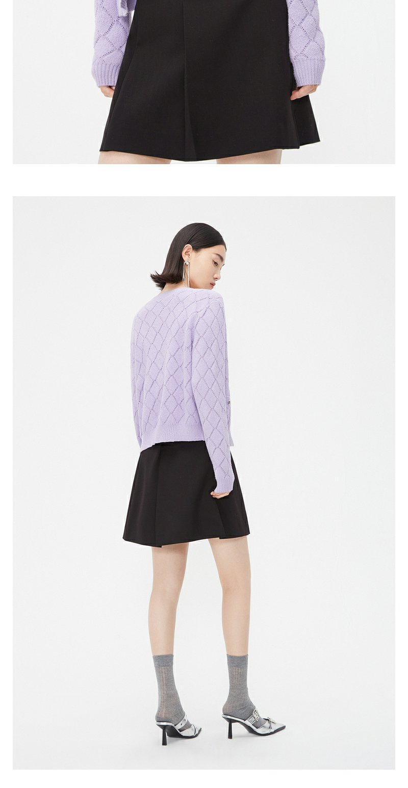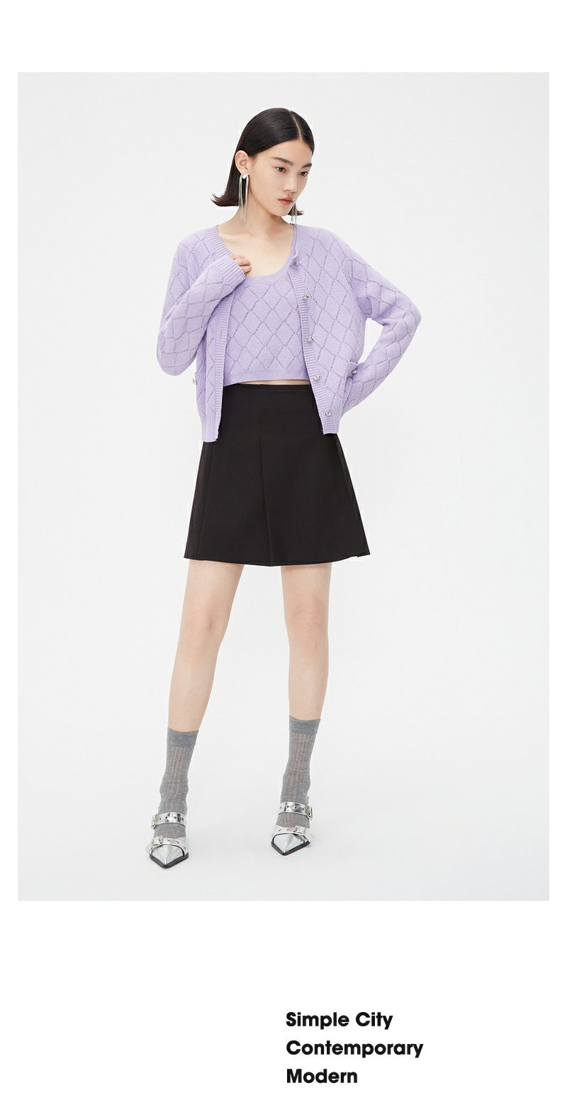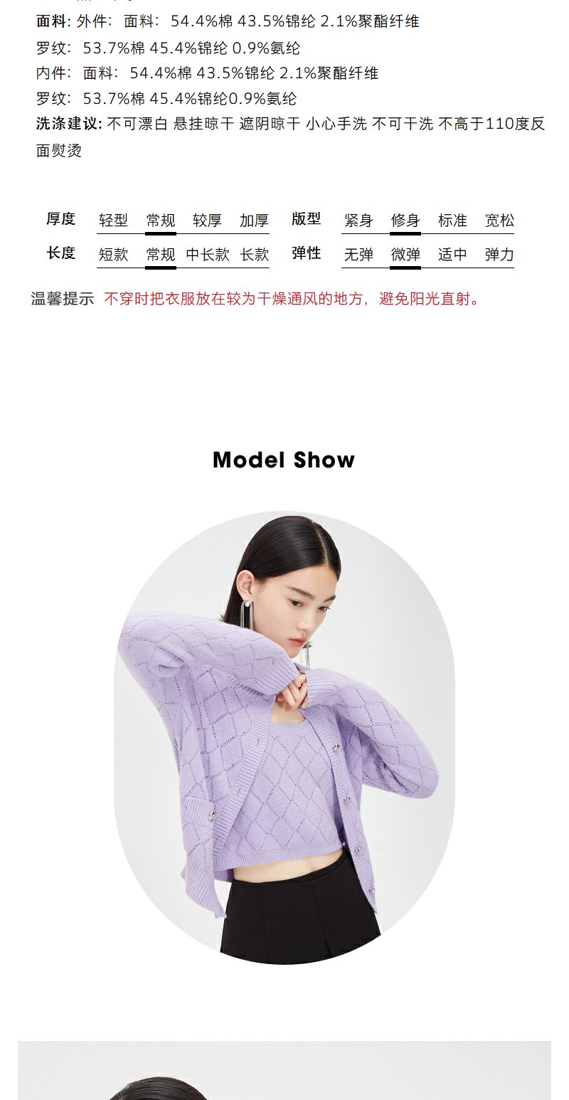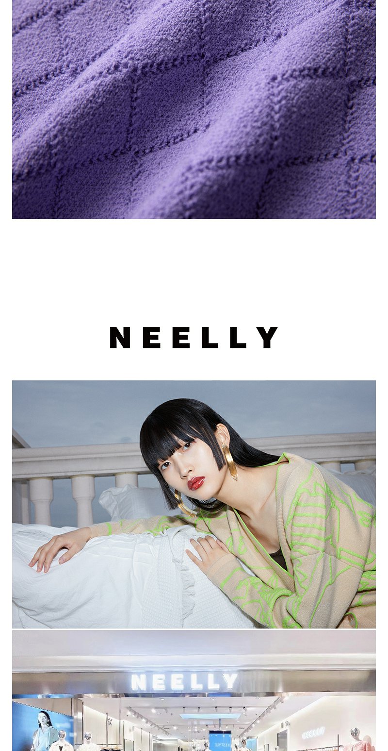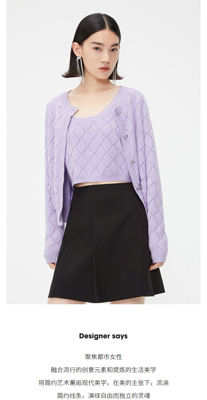 NEELLY纳俪商场同款春季针织开衫套装女紫色圆领爱心纽扣吊带背心N24021A01064