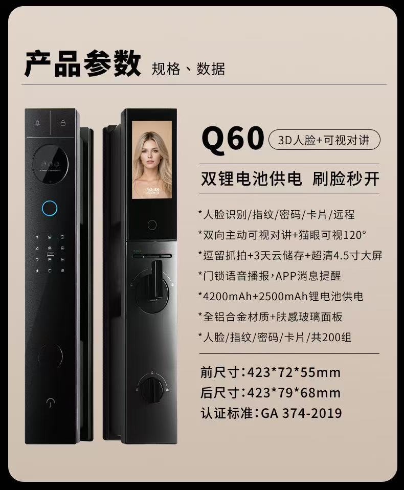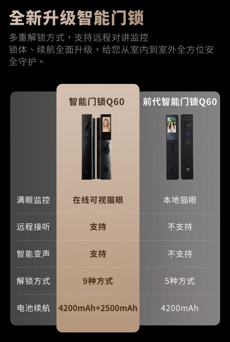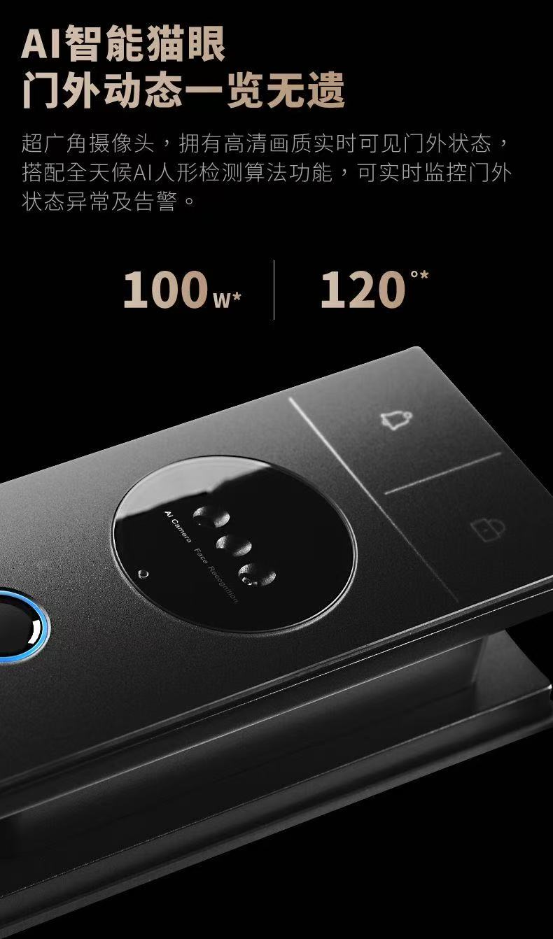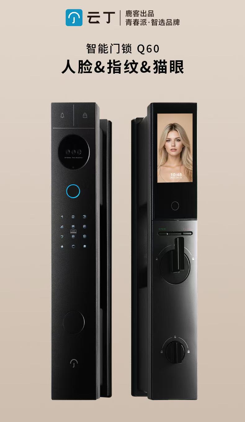 【北京】【鹿客云丁】智能锁Q60 可视猫眼大屏指纹锁防盗家用门锁