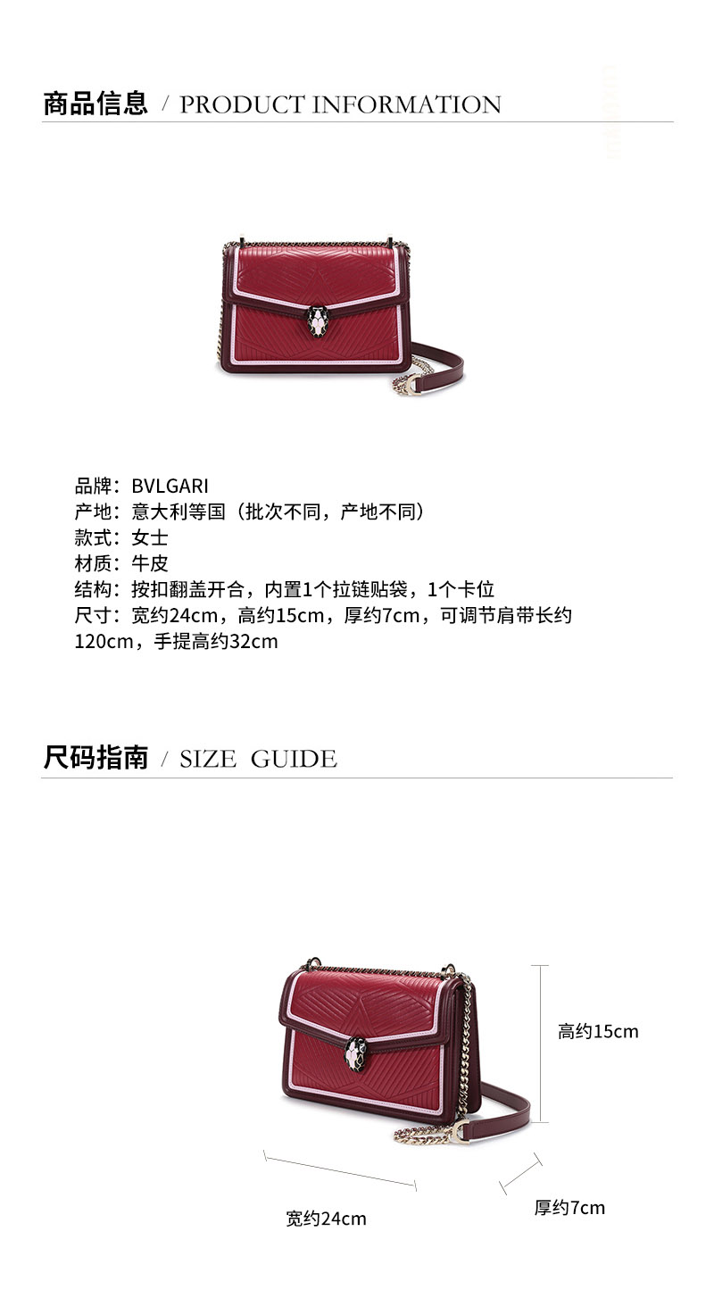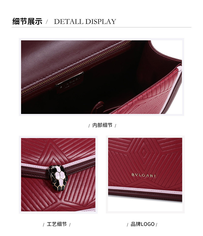 【国内现货】BVLGARI/宝格丽 女士小号SERPENTI DIAMOND BLAST系列小牛皮蛇头扣手提单肩斜挎包 289463