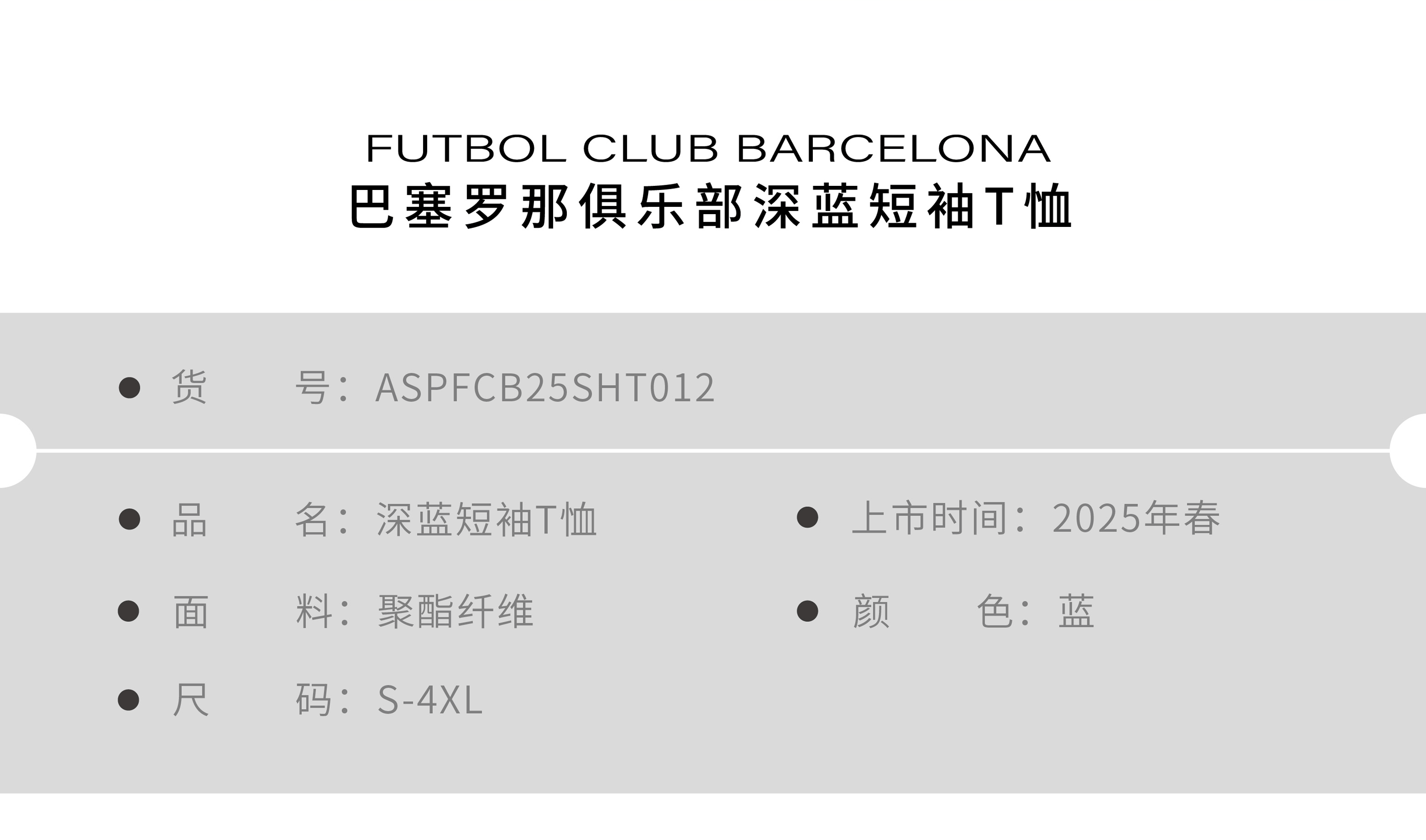 【官方正版】巴塞罗那俱乐部丨巴萨新款春夏深蓝短袖T恤速干透气