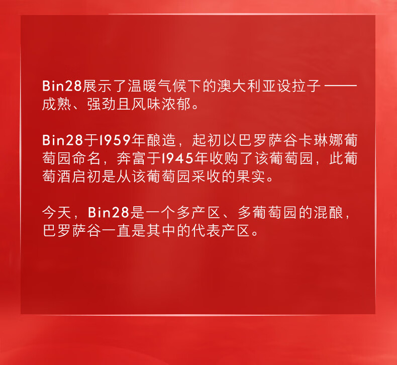 奔富bin28设拉子葡萄酒750ml/010816 橡木风味被完全融合让果香闪耀