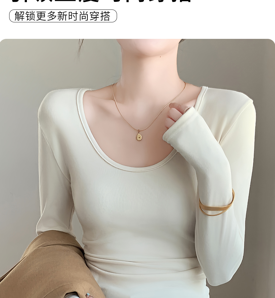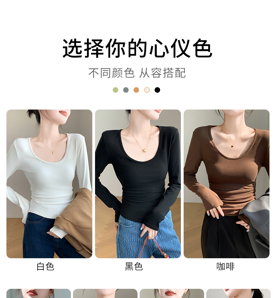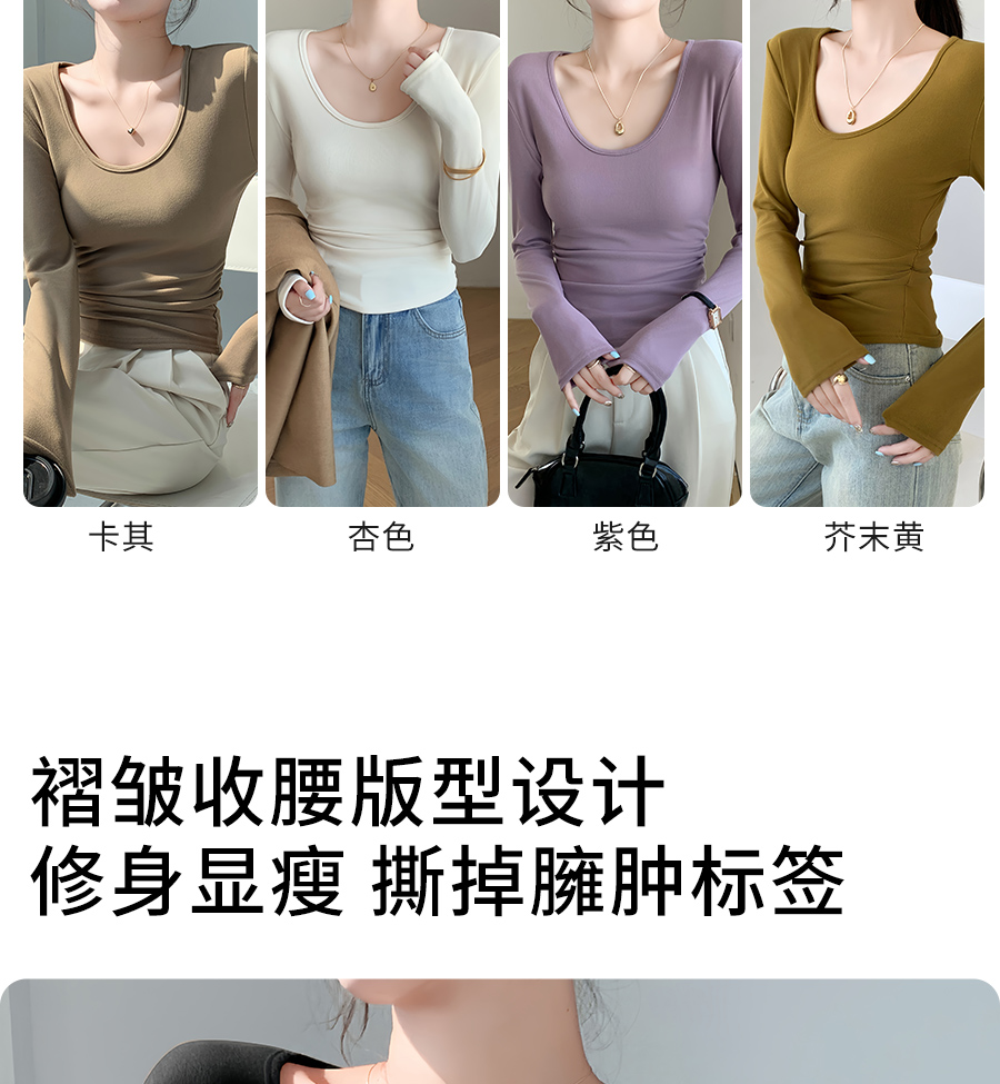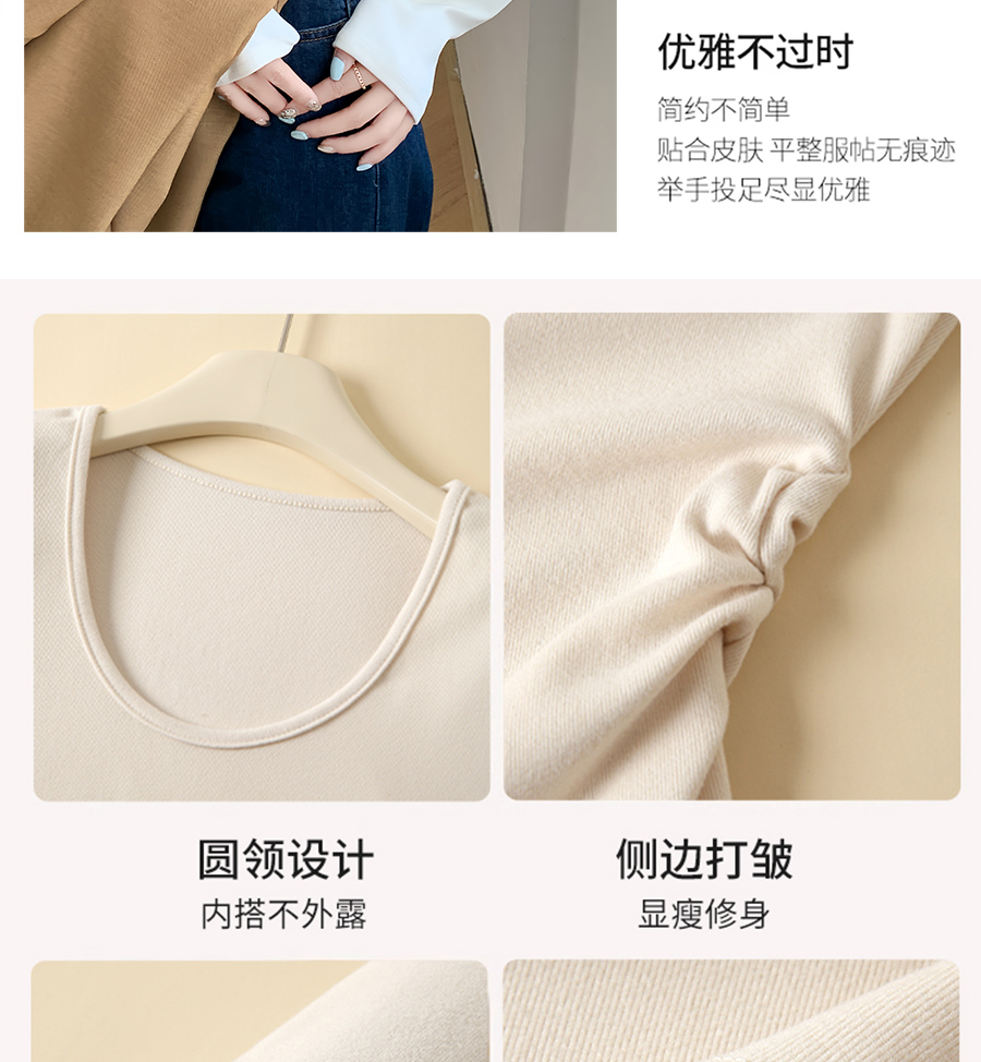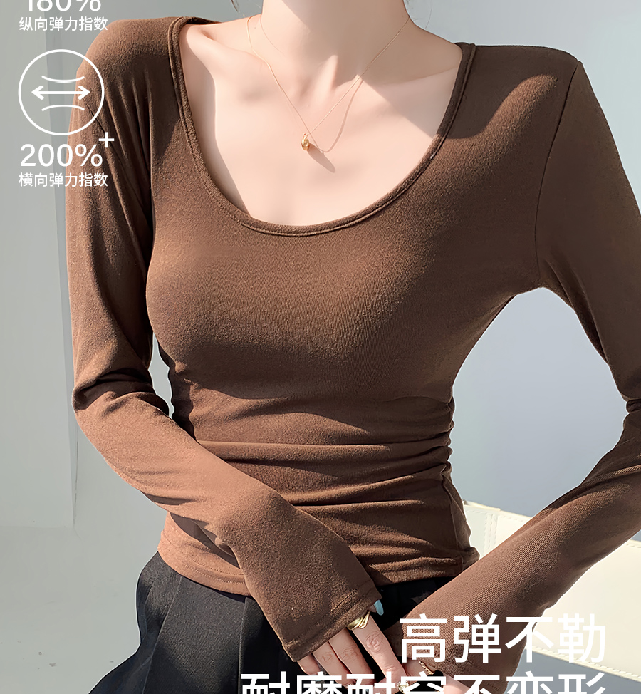 (79元两件!U领&半高领两款多色任选,加购两件立减)椰绒保暖打底衫女褶皱收腰可外穿内搭秋冬加绒t恤磨毛内搭上衣