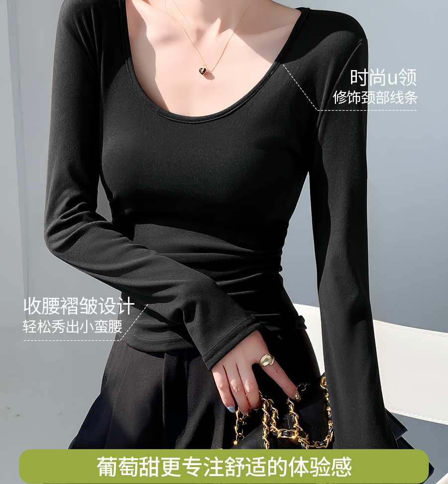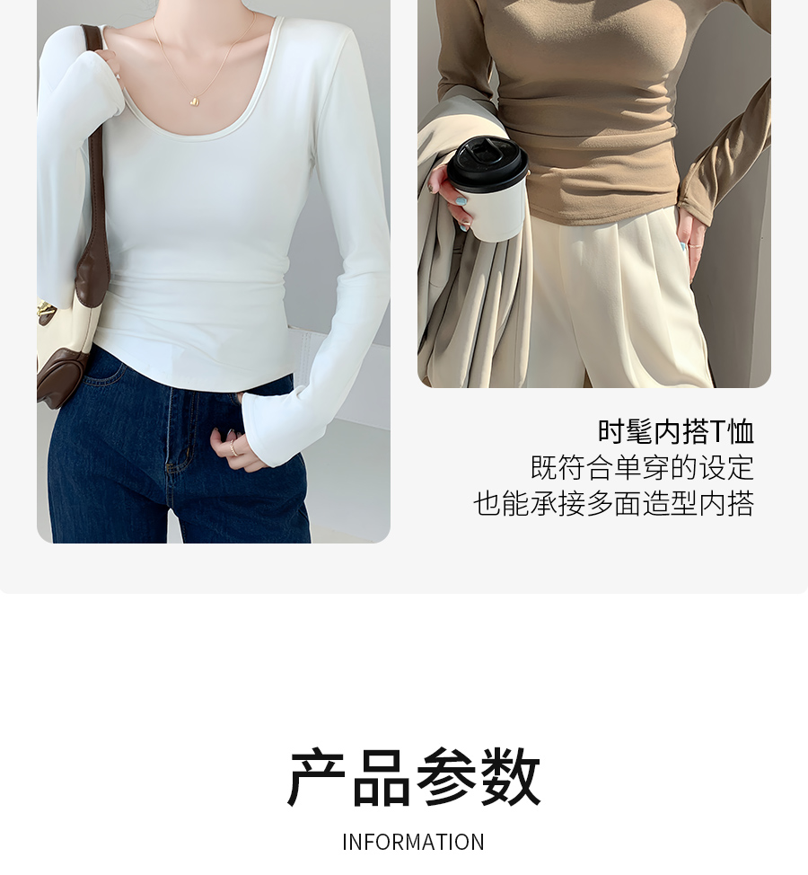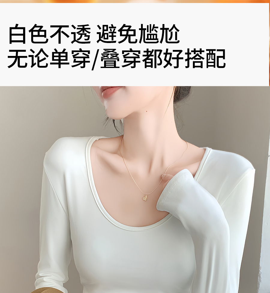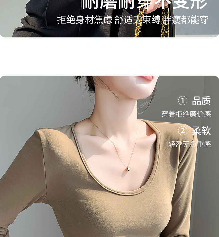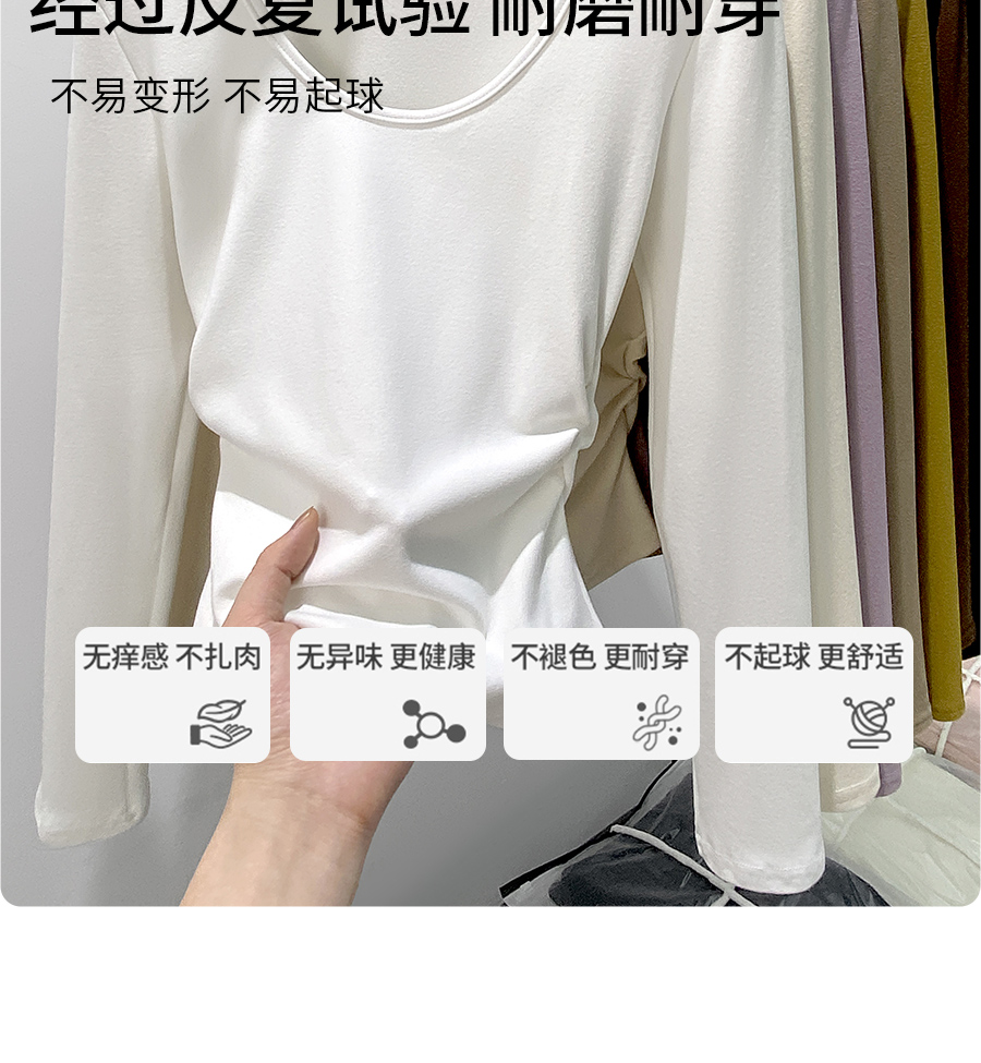(79元两件!U领&半高领两款多色任选,加购两件立减)椰绒保暖打底衫女褶皱收腰可外穿内搭秋冬加绒t恤磨毛内搭上衣